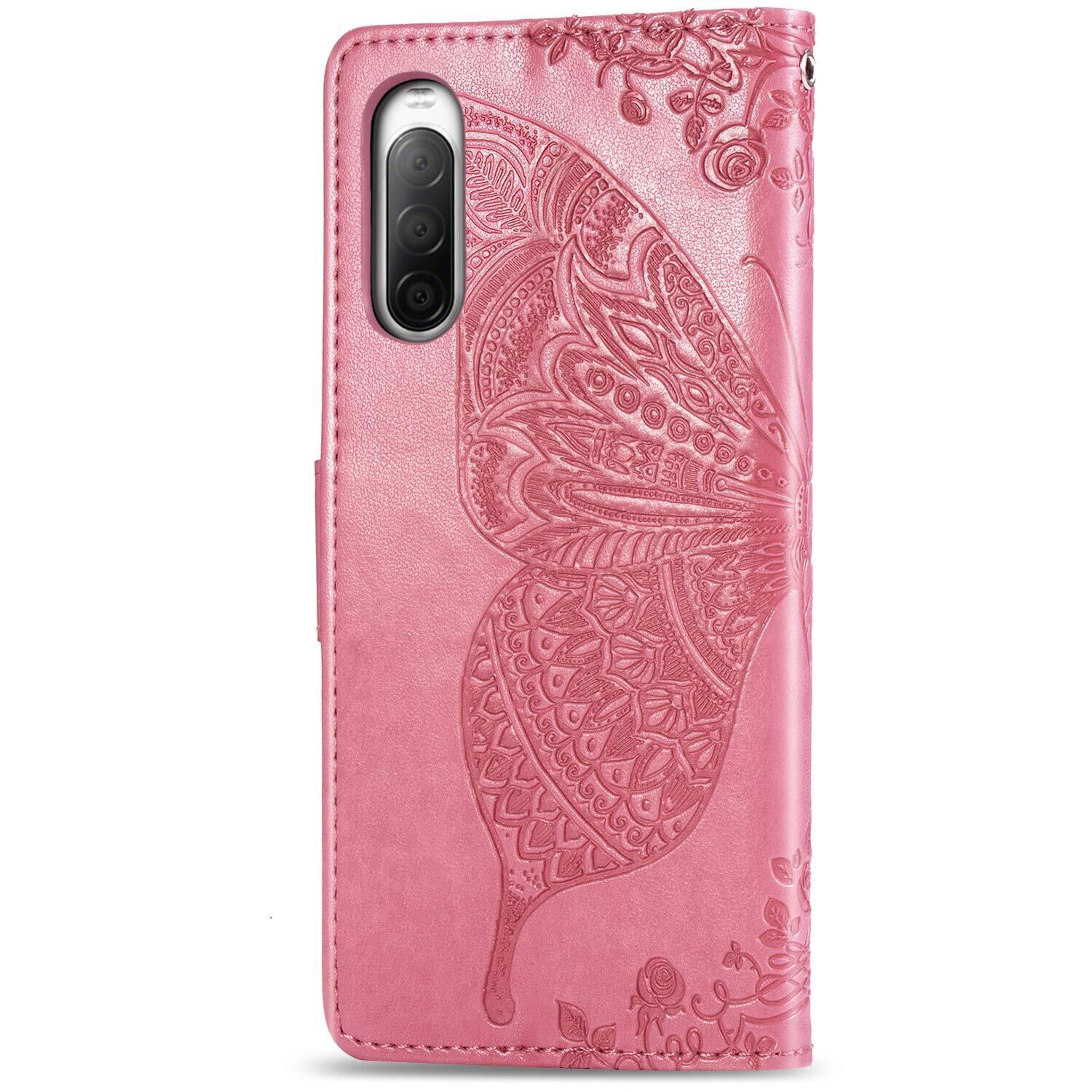 Xperia10 II ケース SO-41A SOV43 手帳 カバー おしゃれ バタフライ エンボス エクスペリア10 マーク2 (ローズピンク)