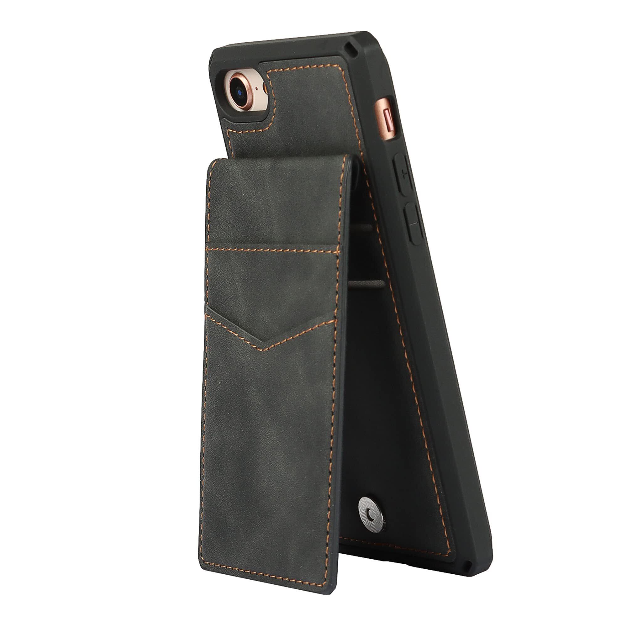 iPhone 7 / 8 / SE 第2世代 背面多機能スマホケース アイフォン7 アイフォン8 アイフォンse 第2世代 携帯保護カバー iphone 7 8 se2 2020 case Zouzt 革レザー ストラップ付き 軽量 ICカード収納 スタンド機能 磁気ボタン内蔵 耐衝撃 保護 4色 ブラック