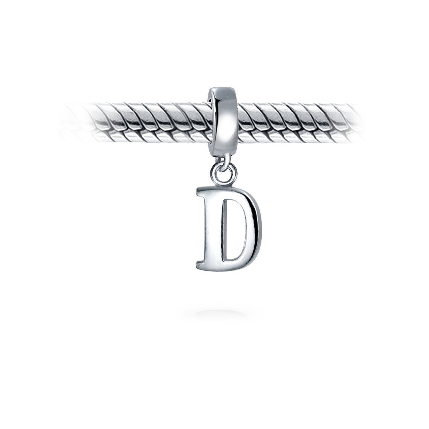 [ブリングジュエリー] シルバー925製 アルファベットD ブロック文字 イニシャル 揺れる チャームビーズ ヨーロピアンブレスレット対応