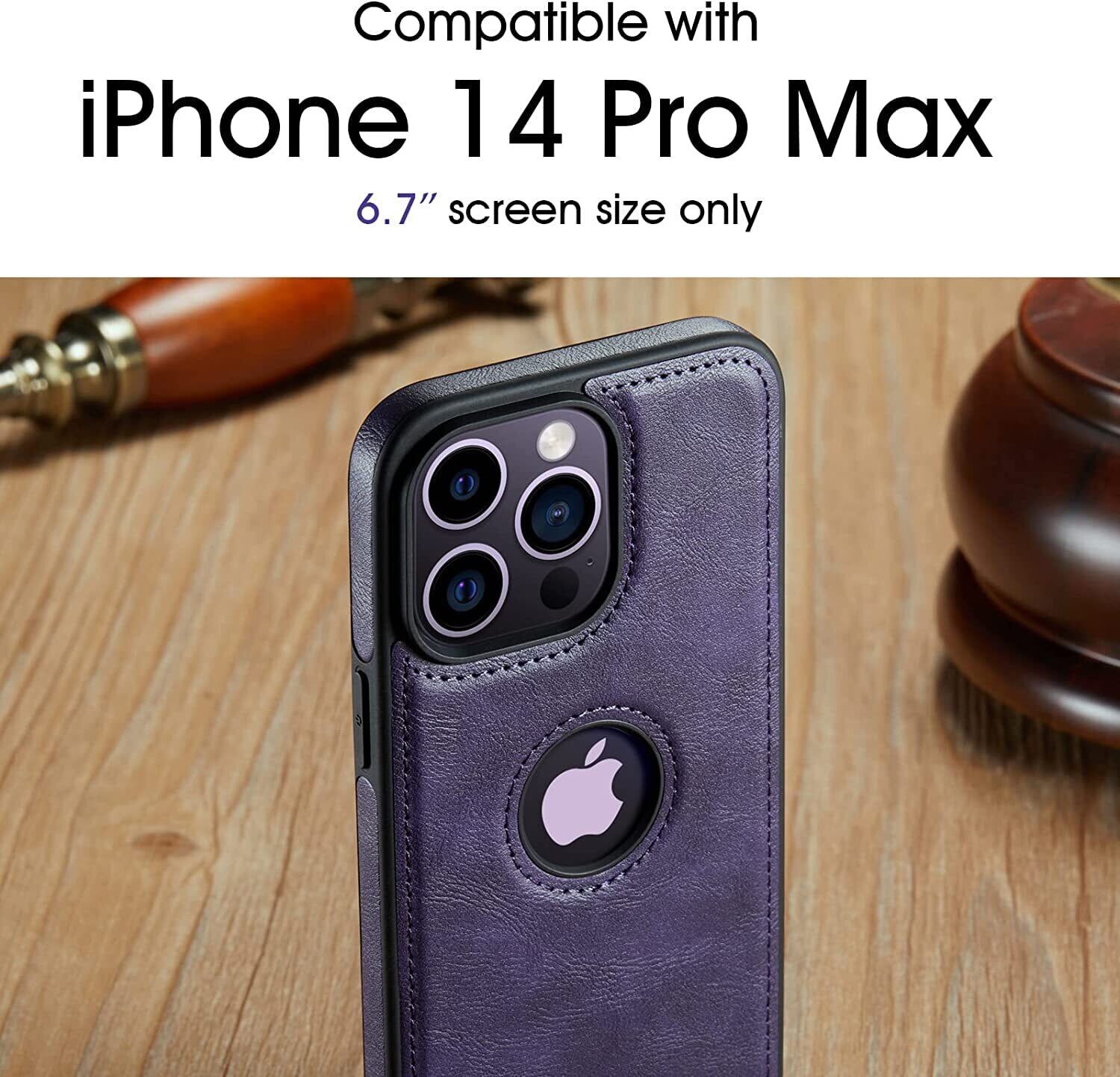 Sibada iPhone 14 Pro Max ケース ユニークなロゴが見えるデザイン レザー クラシック ラグジュアリー ビジネス 画面保護 レンズ保護 スリム薄型デザイン 携帯電話ケース 6.7" - Purple