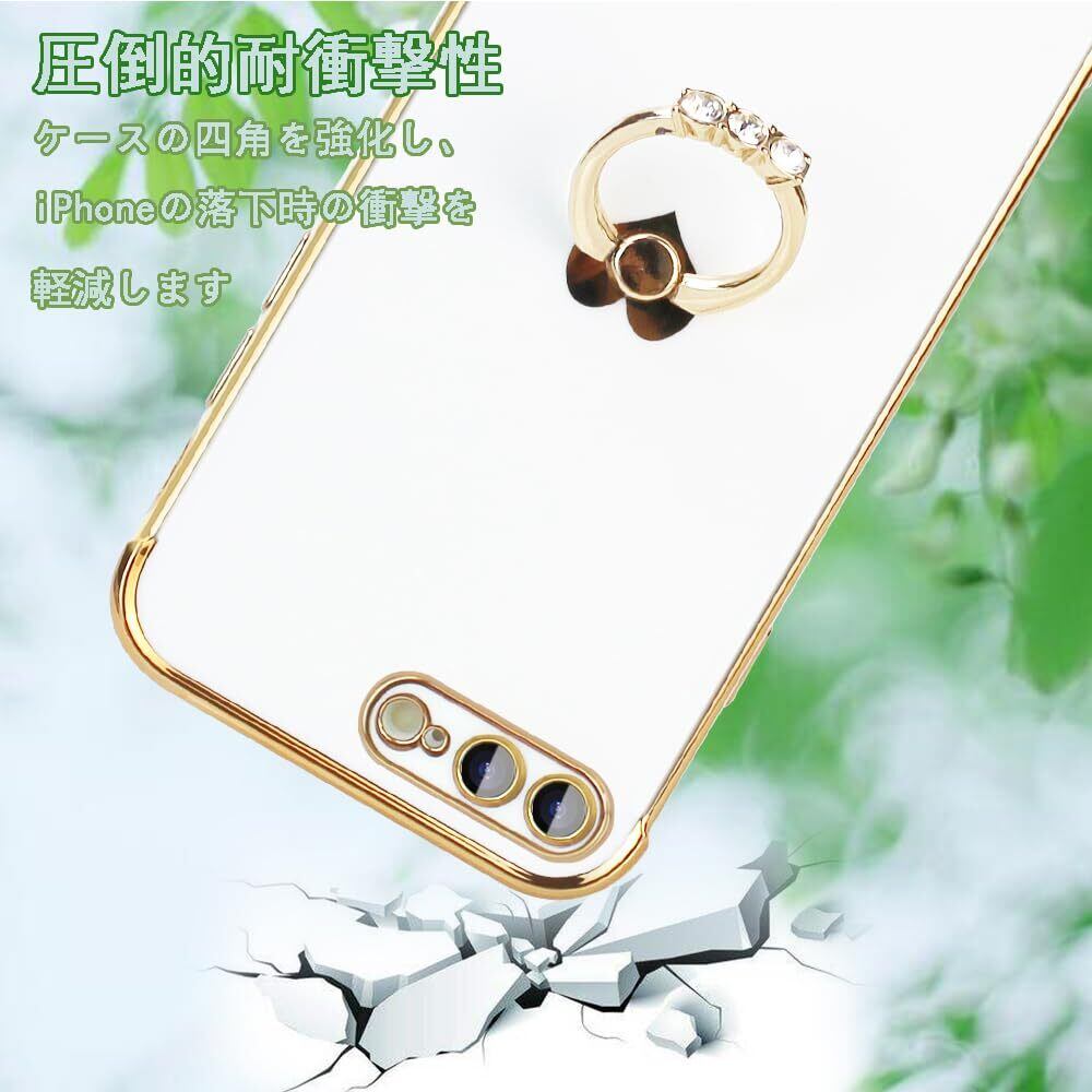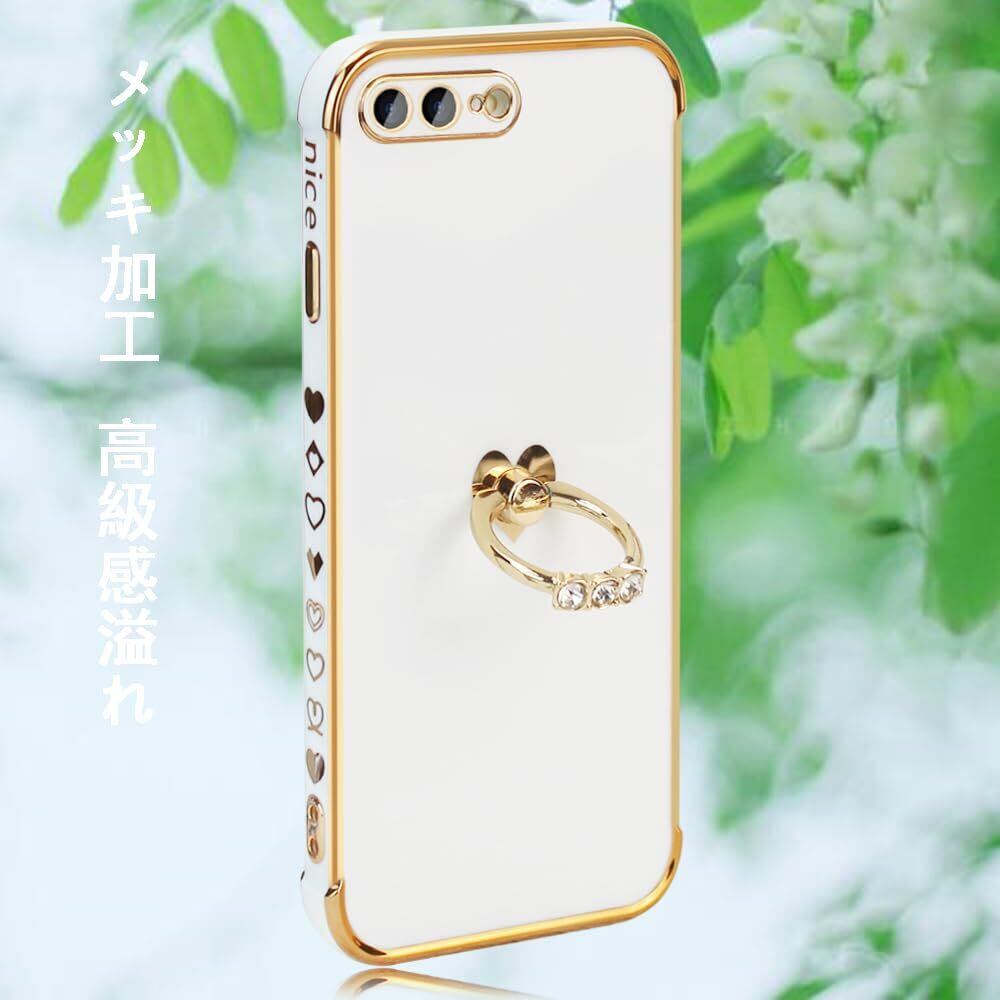 【2022最新】YUYIB iPhone 8 Plus ケース iPhone 7 Plus ケース リング付き かわいい ハート メッキ加工 レンズ保護 キャラクター tpu ソフト ストラップホール 耐衝撃 女性人気 薄型 アイフォン8プラス/7プラスケース (iPhone 8Plus/7Plus, はくしょく)