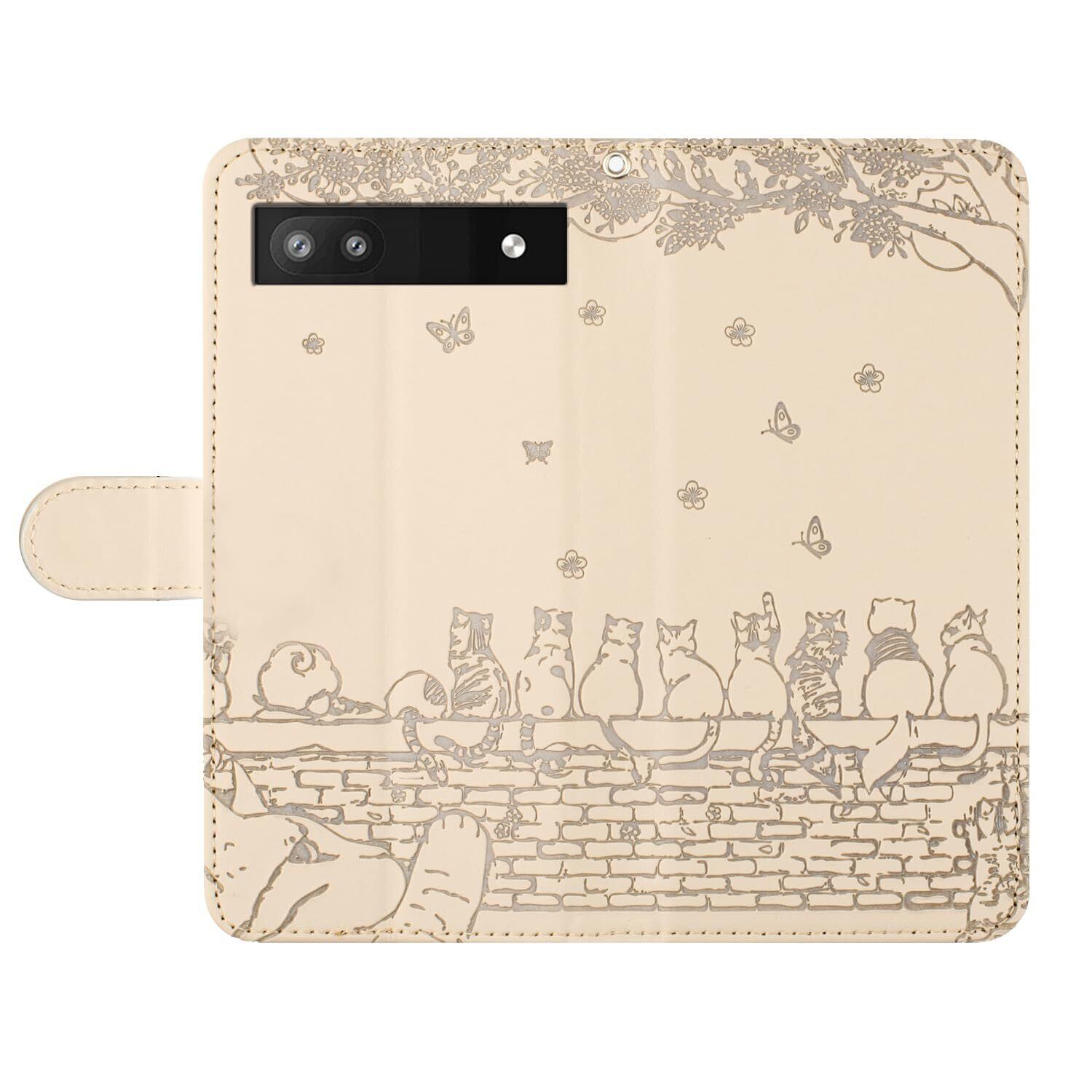 Google pixel 6A ケース 手帳型 グーグル ピクセル6A ケース 手帳型 カバー おしゃれ pixel6A スマホケース 手帳型 携帯カバー かわいい猫と美しい桜柄 Pixel 6a 5G 手帳型ケース 全面保護 人気 Google Pixel 6a 携帯ケース Pixel 6a カバー 手触りが良い PUレザー カード収納 マグネット式 スタンド機能【6.1インチ】オフホワイト