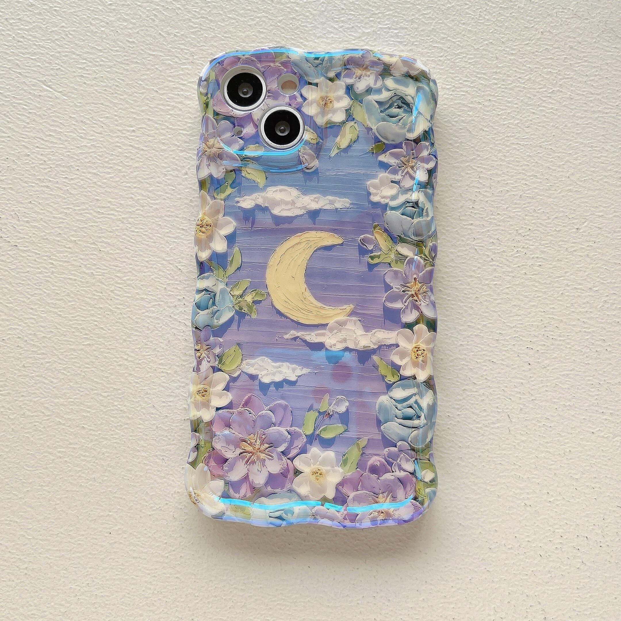 QLTYPRI iPhone 13 Pro MaxケースTPUカバー おしゃれ 韓国 可愛い 花柄 月 ウェーブ 薄型 軽量 耐衝撃 スマホケース ワイヤレス充電対応 ストラップホール付き アイフォン13 Pro Max ケース 6.7インチ 対応 - パープル #3