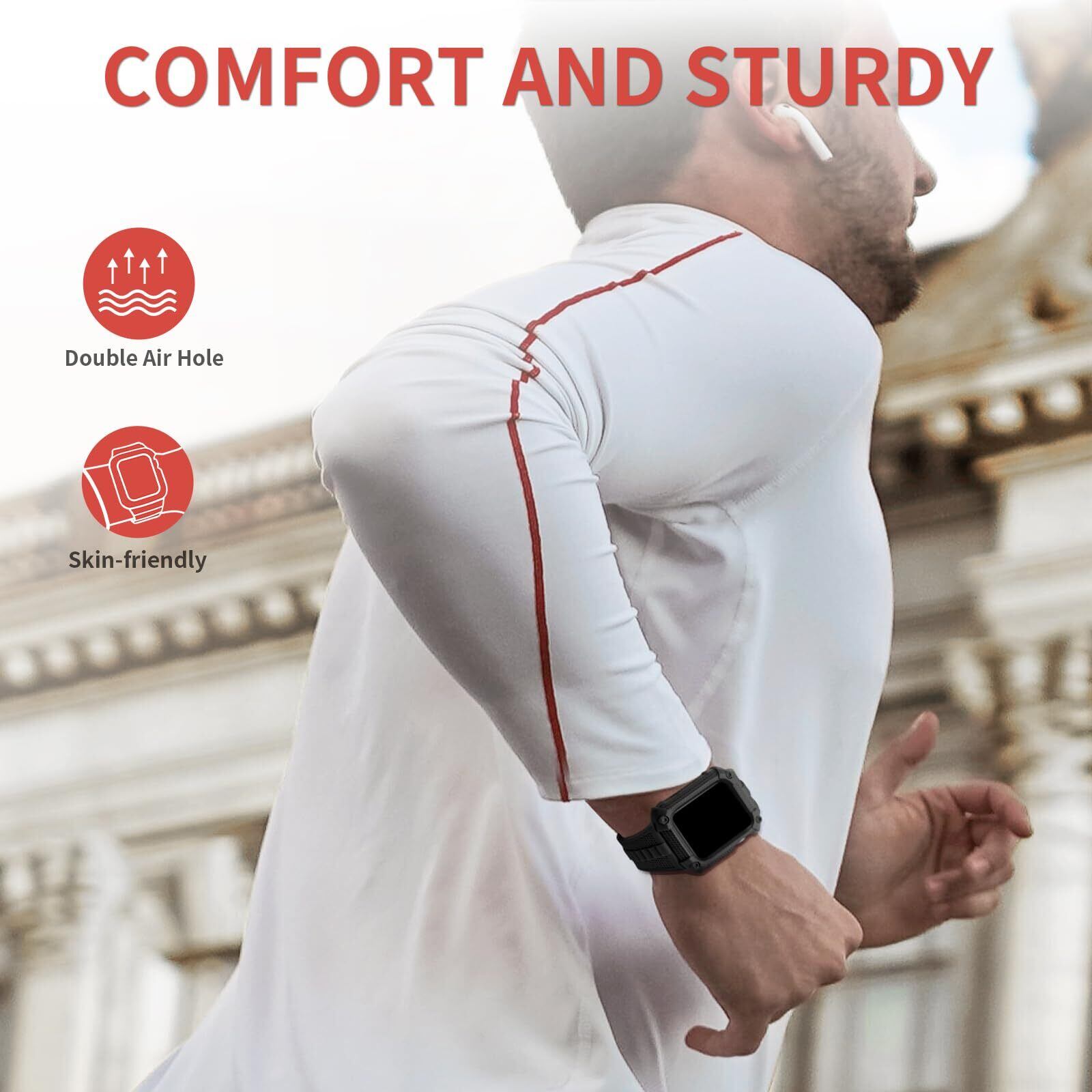 【正確なカットアウト】Wristitani Warriorシリーズアップルウォッチケースは、最新のApple Watch 7/8 41mm 45mm用に設計されました。すべてのカットアウトは、ボタンと時計のリューズでスムーズに機能するように正確に作られています。45mm ストラップは5.51 – 8.67 inch (139mm-220mmの手首にフィットします。