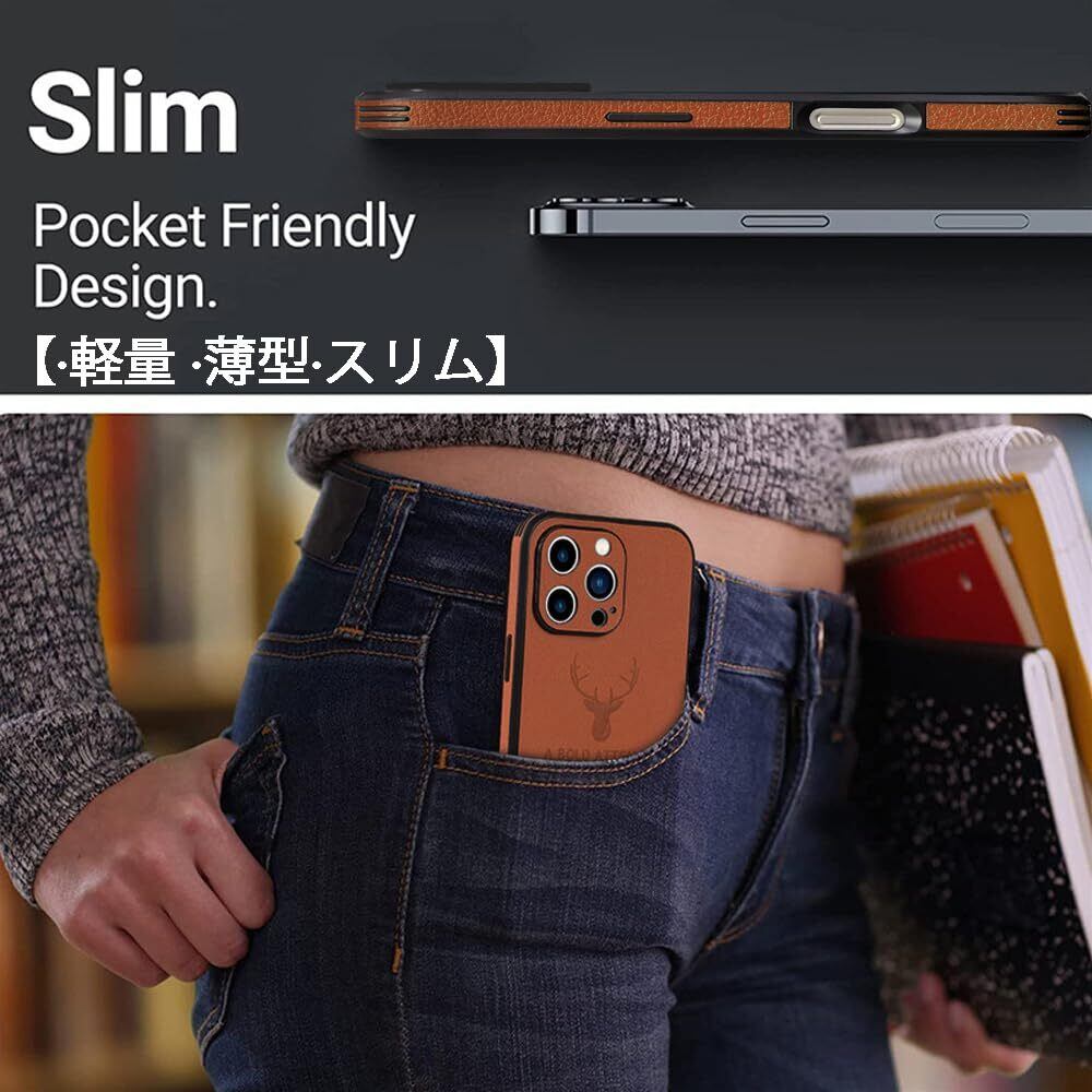 JOOBOY iPhone ケース 耐衝撃 薄型 レンズ保護 コンパクト PC素材 背面 高級なPUレザー ハードカバー マット加工 指紋防止 カメラ保護 携帯カバー アイフォン カバー