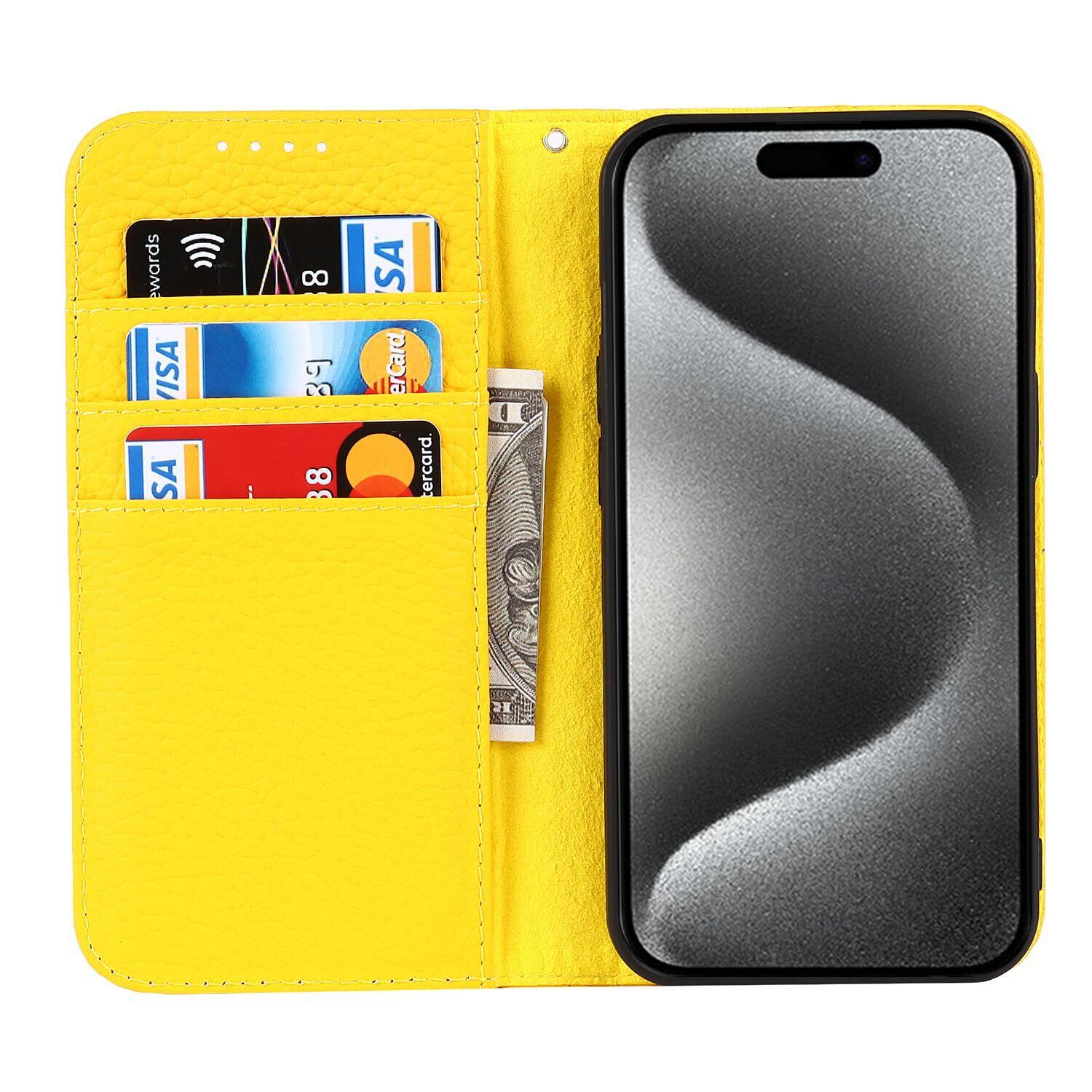 【2022最新】Eastwave アイフォン for iPhone 15 Pro ケース 牛革 本革 手帳型 for iPhone15 Pro 財布型カバー for iPhone 15pro 本革 手帳型 携帯スマホカバー 人気 おしゃれ 内蔵マグネット 耐汚れ 耐衝撃 カード収納 人気 -イエロー