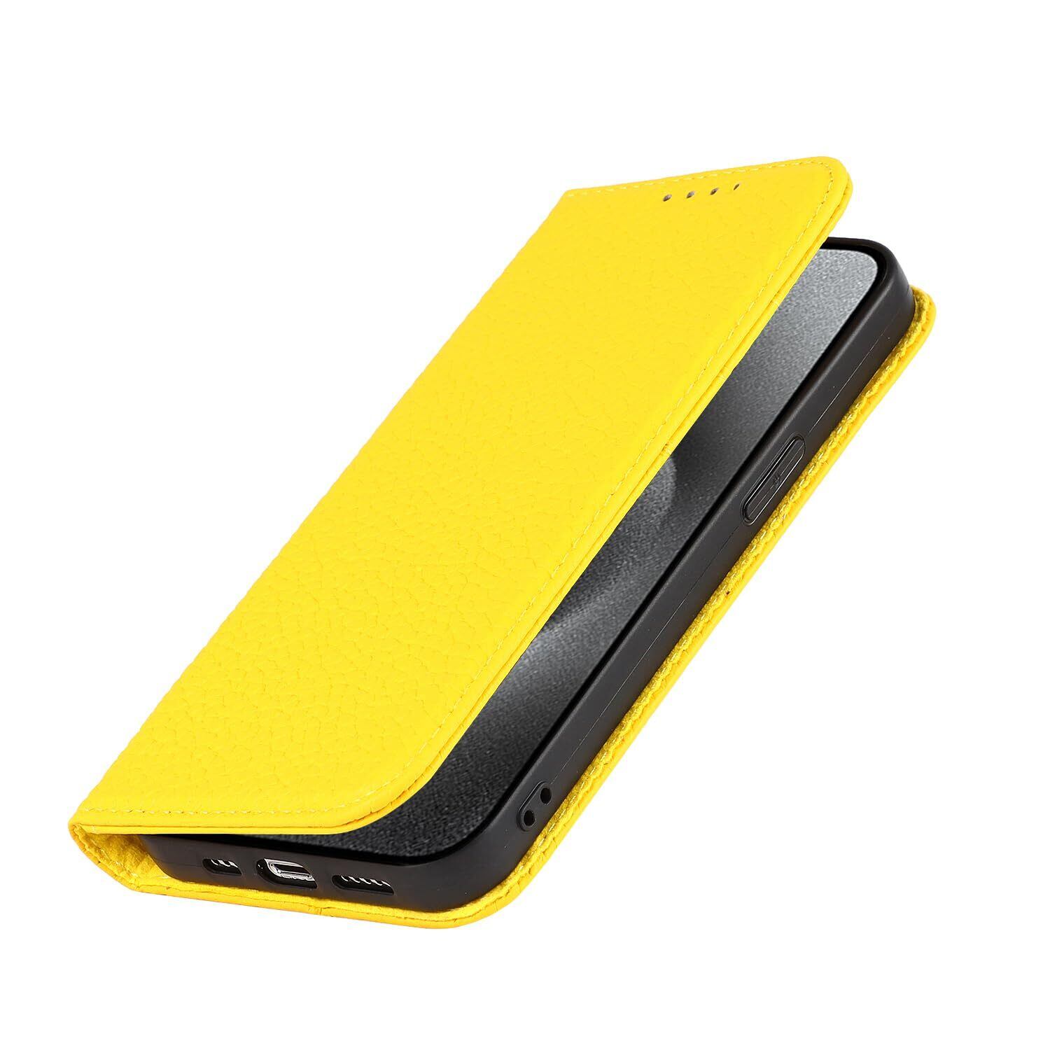 Eastwave アイフォン for iPhone 15 Pro ケース 牛革 本革 手帳型 for iPhone15 Pro 財布型カバー for iPhone 15pro 本革 手帳型 携帯スマホカバー 人気 おしゃれ 内蔵マグネット 耐汚れ 耐衝撃 カード収納 人気 -イエロー