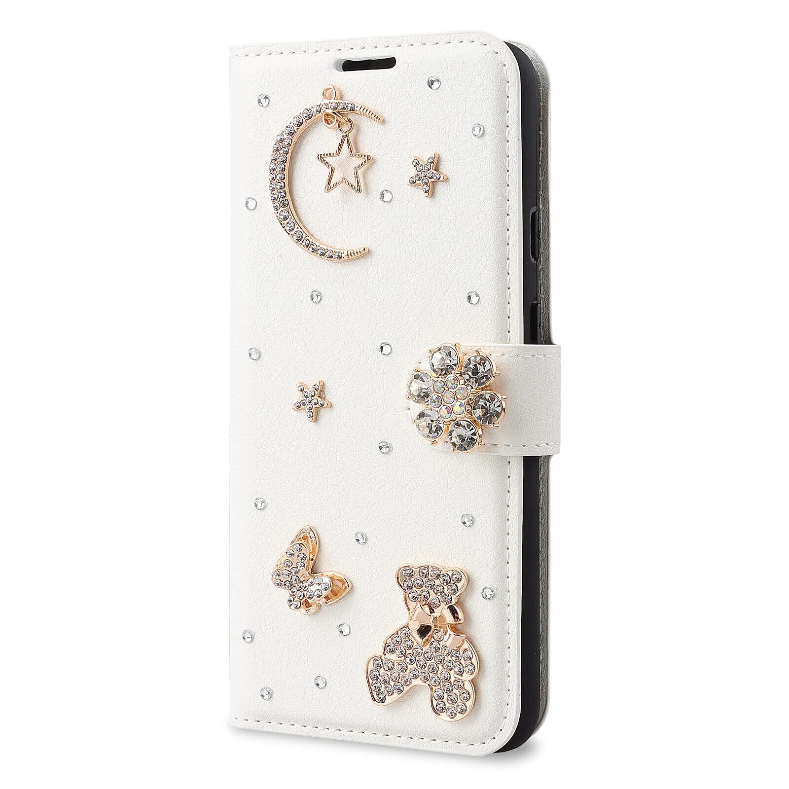 iPhone se 第3/2世代 兼用 ケース PUレザー 手帳型カバー ラインストーンデコ お花スタンド ケース カードスロット付 iPhone se3 / se2 iPhone8 iPhone7 専用 アイフォンse 3 / 2 / 7 / 8 ケース 手 ケース カバータッチペン プレゼント (iPhoneSE2/3, 幸せな小熊)