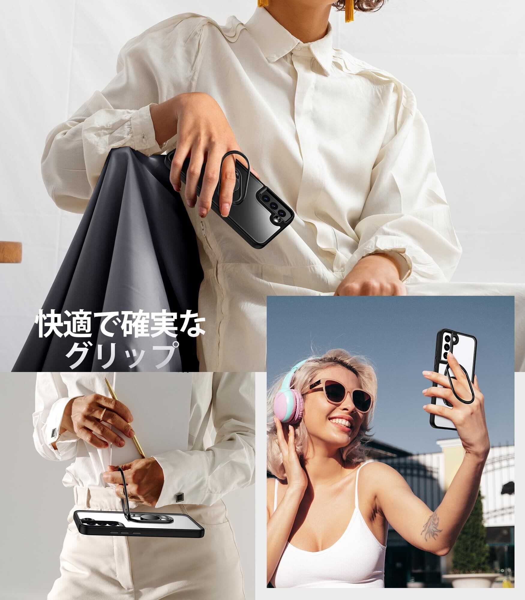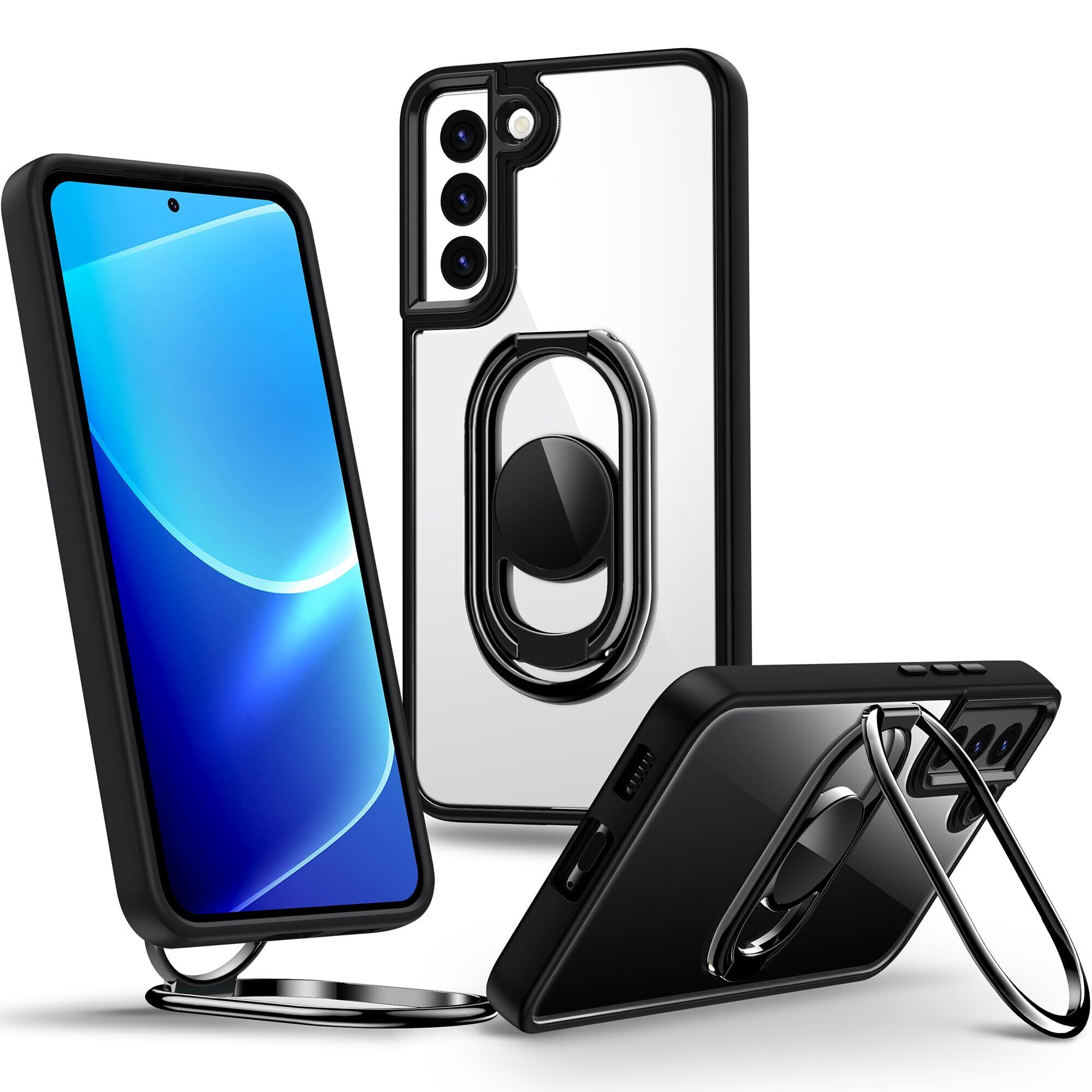 Rockaway Galaxy S22 ケース リング スタンド機能 角度調節可能 折り畳み 落下防止 耐衝撃 SC-51C SCG13 カバー ギャラクシーS22 スマホケース - ブラック