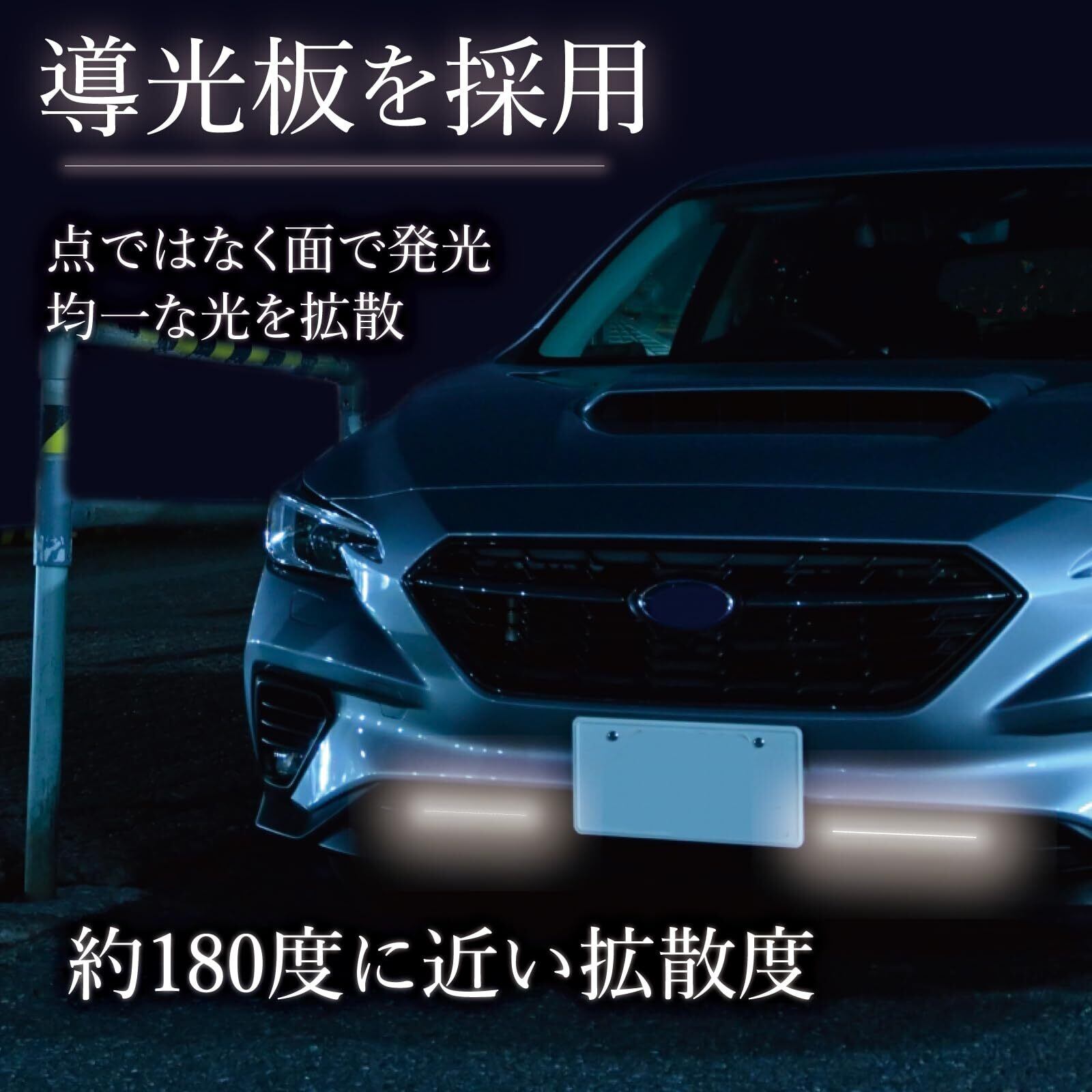 導光板を採用しているので点で発光ではなく、全面発光なので明るく、夜間の走行や車幅確認などに役立ちます。