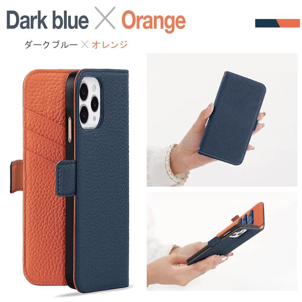 MAGICASE for iPhone12ケース手帳型 いphone12 ケース 手帳型 おしゃれ iPhone12Pro ケース 手帳型 かわいい スマホケースiphone12 シンプル アイフォン12/12PRO カバー 手帳型 マグネット式 衝撃吸収 全面保護 軽量 高級PUレザー カード収納 スタンド機能 防塵 擦り傷防止 女性 人気 6.1インチ(ダークブルー メ オレンジ)