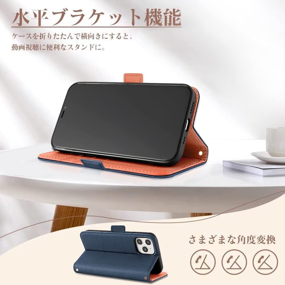 【在庫処分】MAGICASE for iPhone12ケース手帳型 いphone12 ケース 手帳型 おしゃれ iPhone12Pro ケース 手帳型 かわいい スマホケースiphone12 シンプル アイフォン12/12PRO カバー 手帳型 マグネット式 衝撃吸収 全面保護 軽量 高級PUレザー カード収納 スタンド機能 防塵 擦り傷防止 女性 人気 6.1インチ(ダークブルー メ オレンジ)