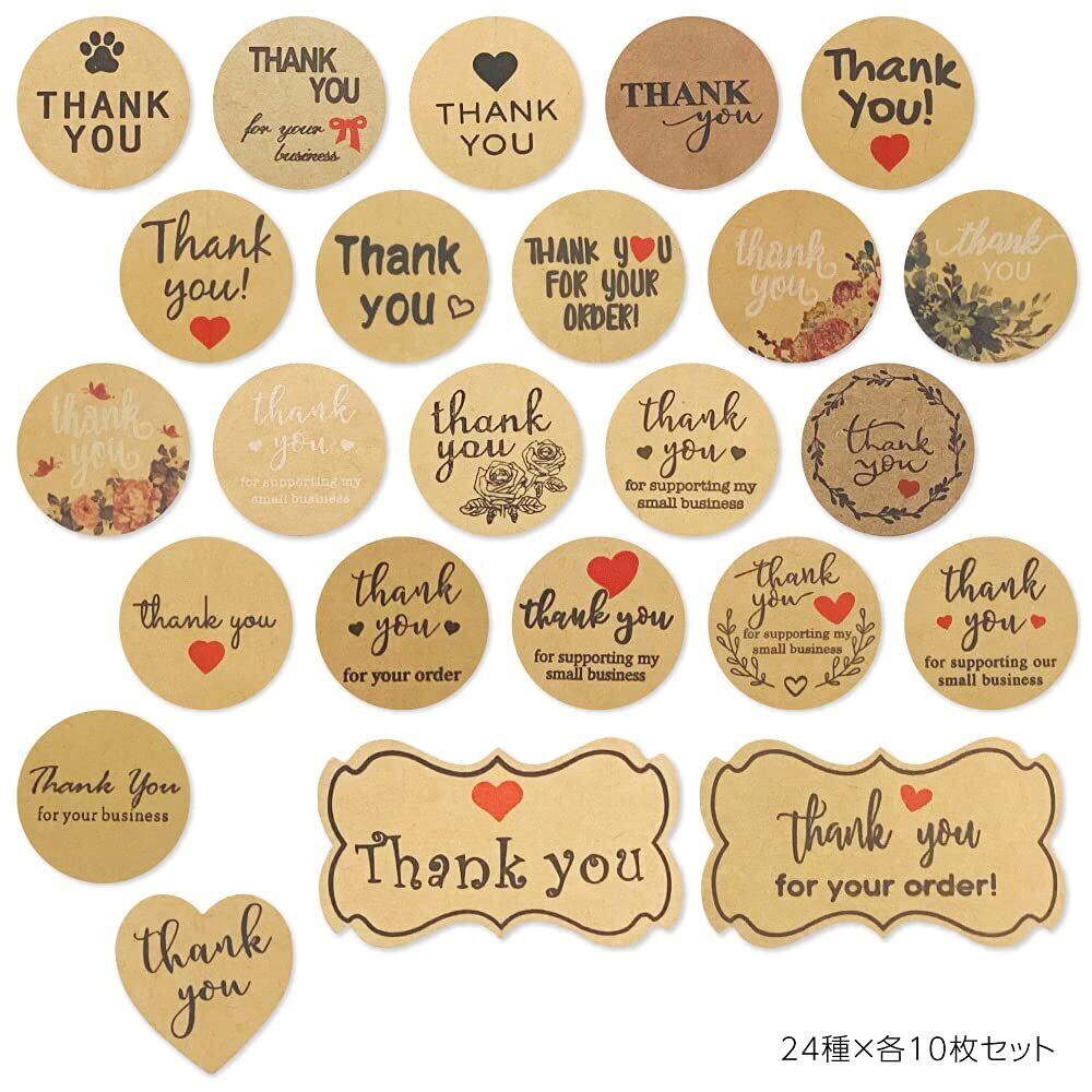 Shop Azalea(ショップ アザリア) Thank you シール ギフトシール 丸型 2.5cm 24種×各10枚セット ラベル 丸型 シンプル ラッピング シール 感謝 業務用 ナチュラル