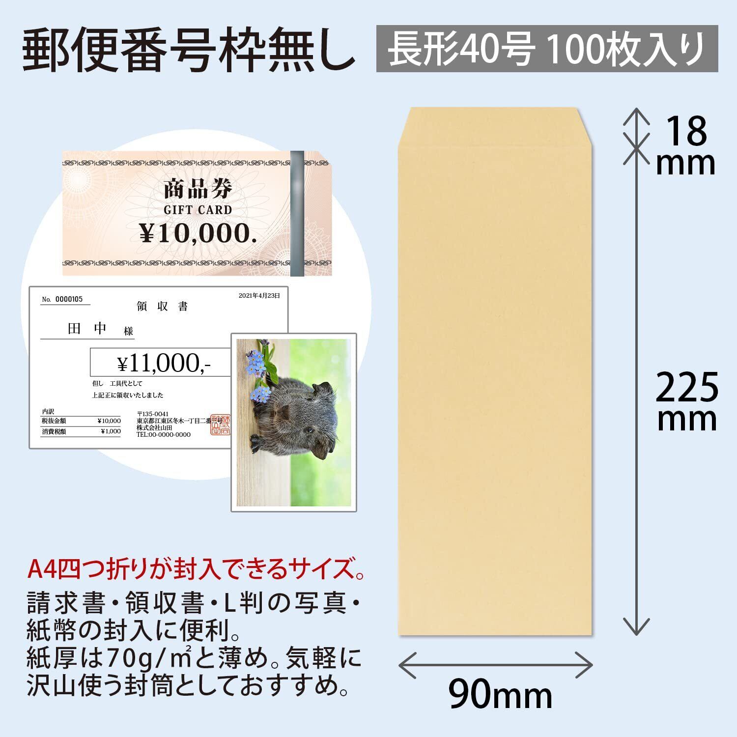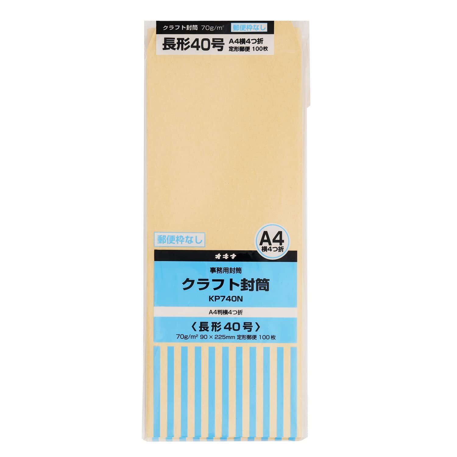 オキナ クラフト封筒 長形40号 枠無し 100枚入 70g KP740N