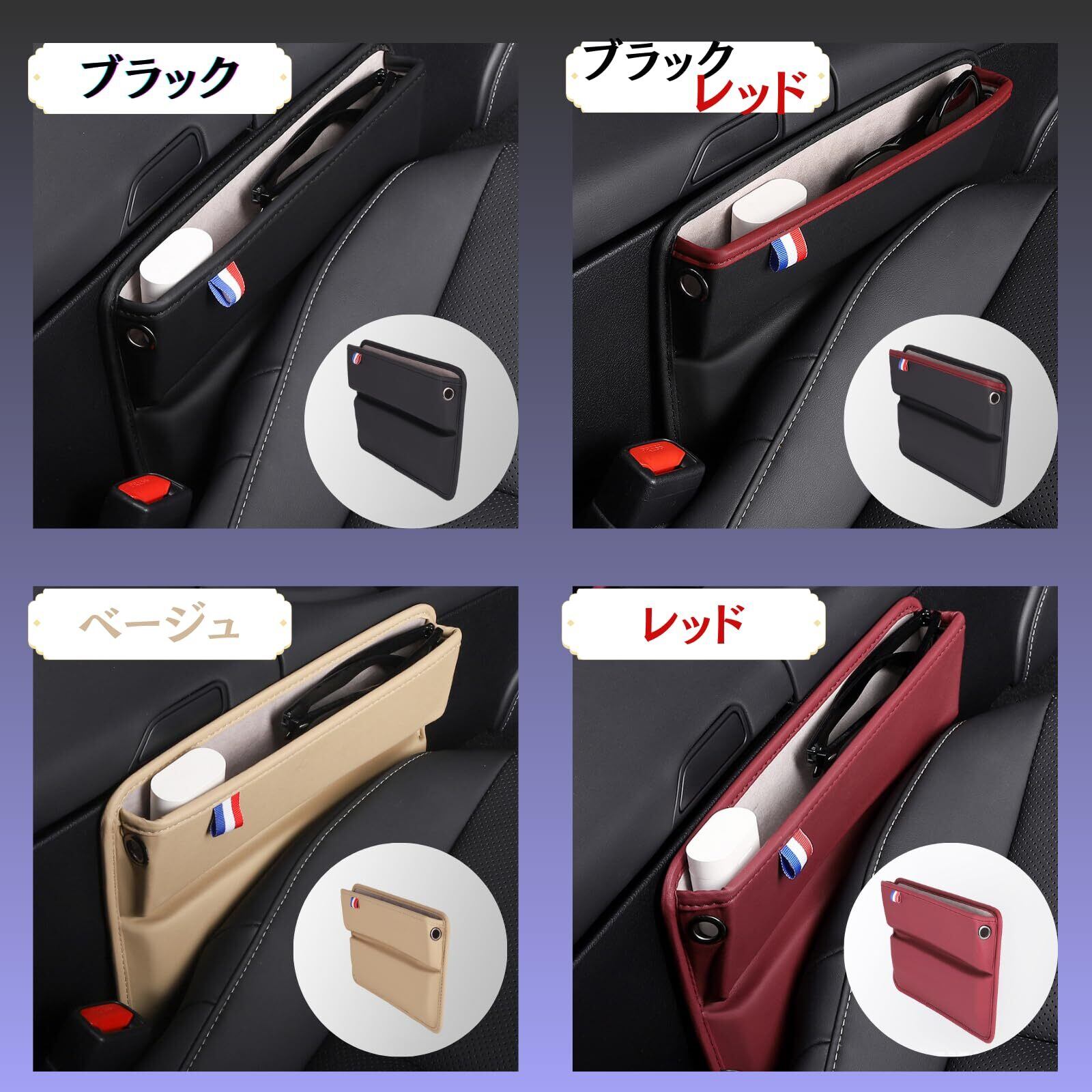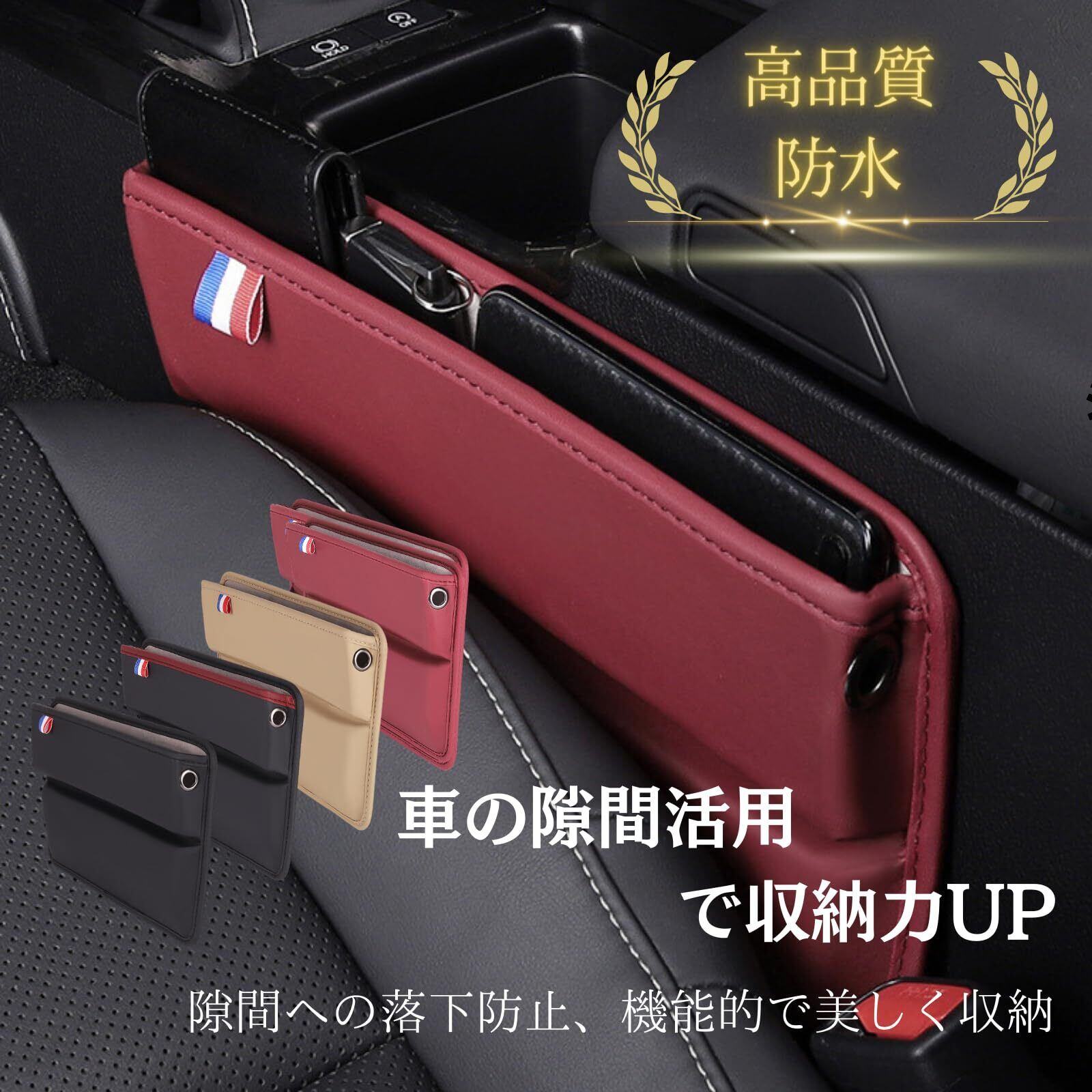 sakurawing 車 シートサイドポケット シート 隙間 収納 ポケット ボックス コンパクト カー用品 便利 小物 運転席 助手席 2個 ブラックレッド