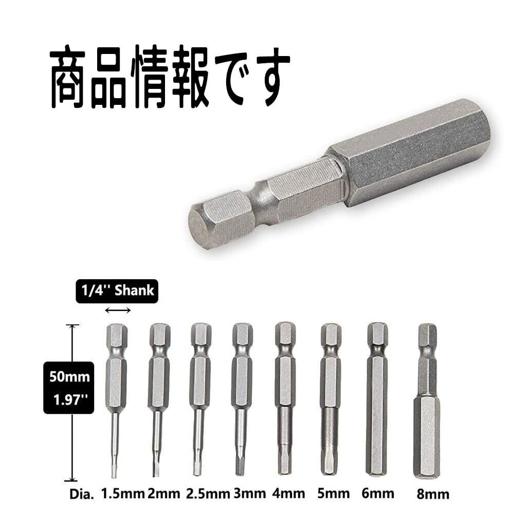 六角レンチビット 8本セット インパクトドライバービット 精密ドライバー 六角轴 6.35mm 磁気吸着 電動ドライバー ビット 1.5mmー8mm ドリル ビット工具 50mm長六角ビット