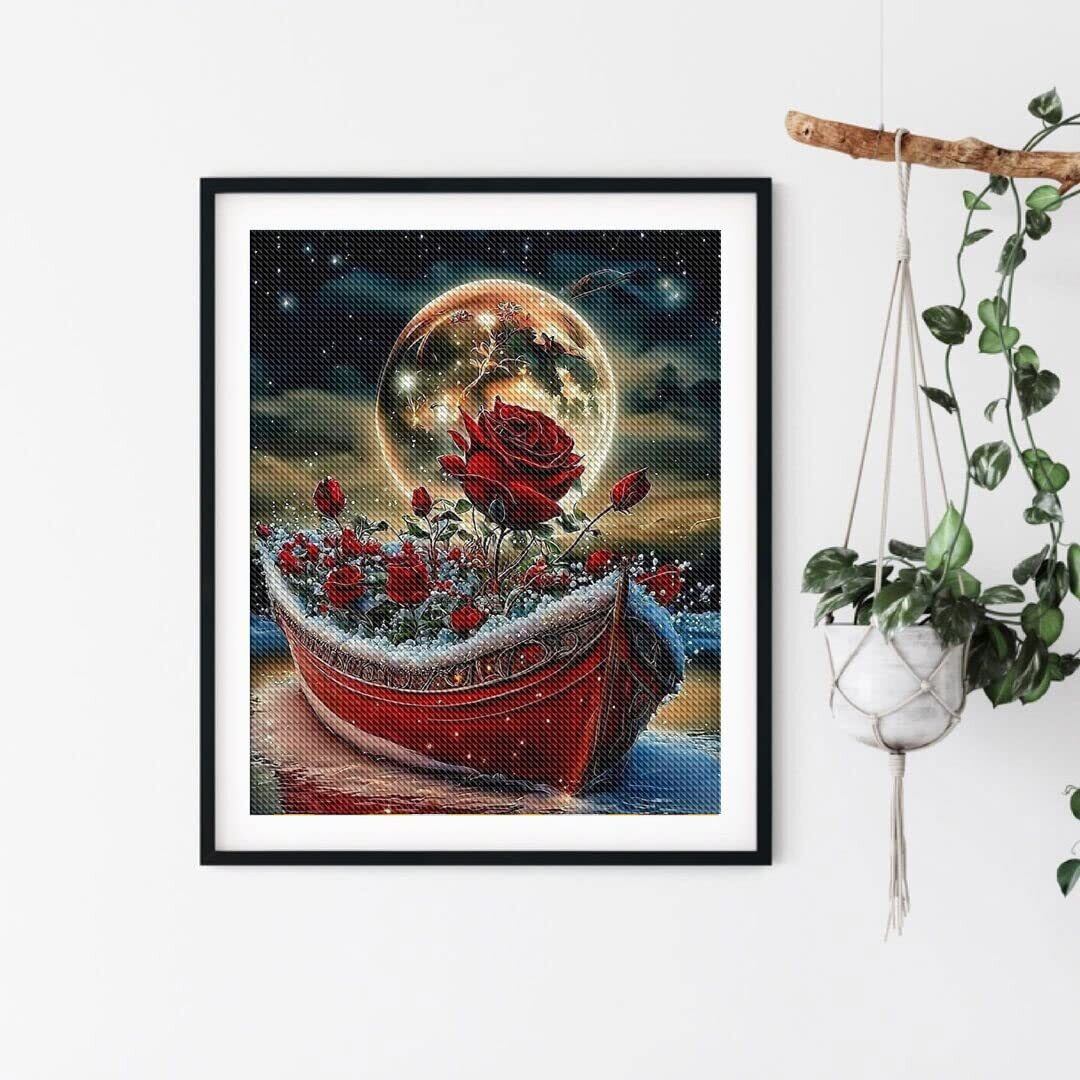 ダイヤモンドアート スクエア 四角 ダイヤモンドペインティング 手作り絵画 全面貼り付けタイプ ビーズアート 30x40cm バラ船