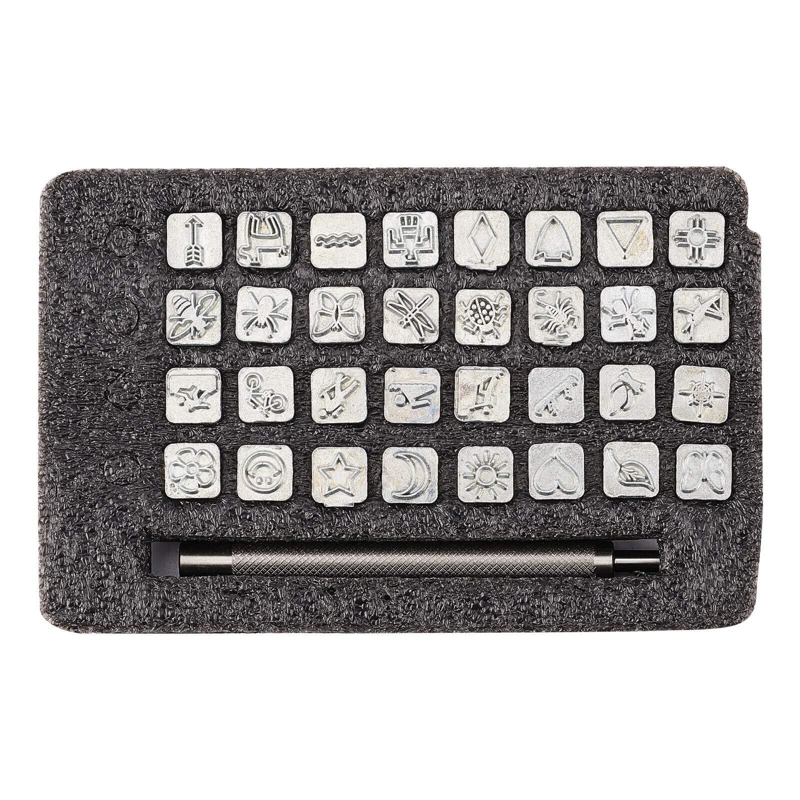PH PandaHall 32個 レザークラフト 刻印 ステンレス ポンチ 革 打刻印 打ち具 昆虫テーマ 1個のハンドル付き レザークラフトベルトバッグクラフトDIYジュエリーマーキング用
