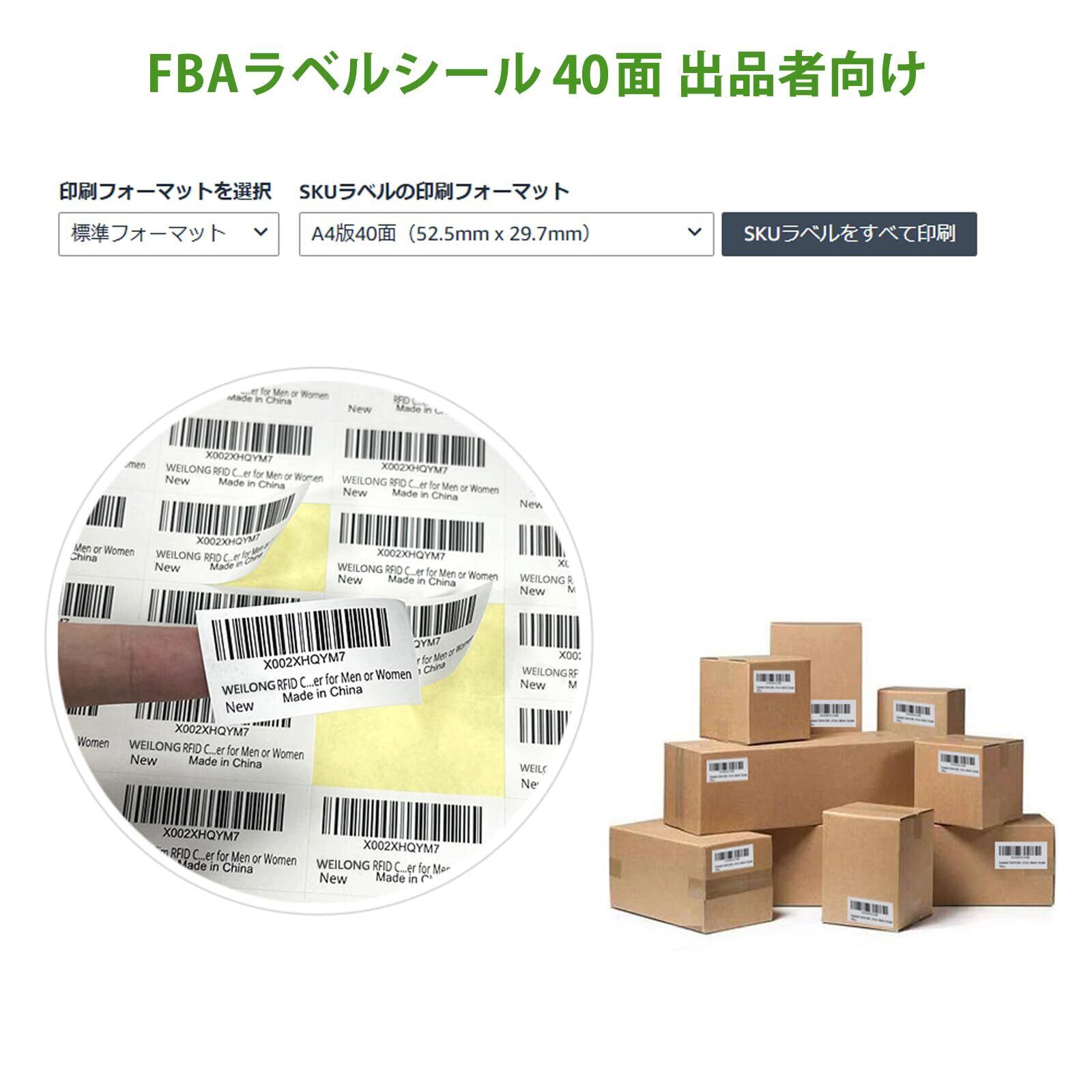 ラベルシール 出品者向け FBA 商品 ラベル 用紙 40面 100シート 4000枚 A4 FBAラベル インクジェットプリンター レーザープリンター両用 シール用紙