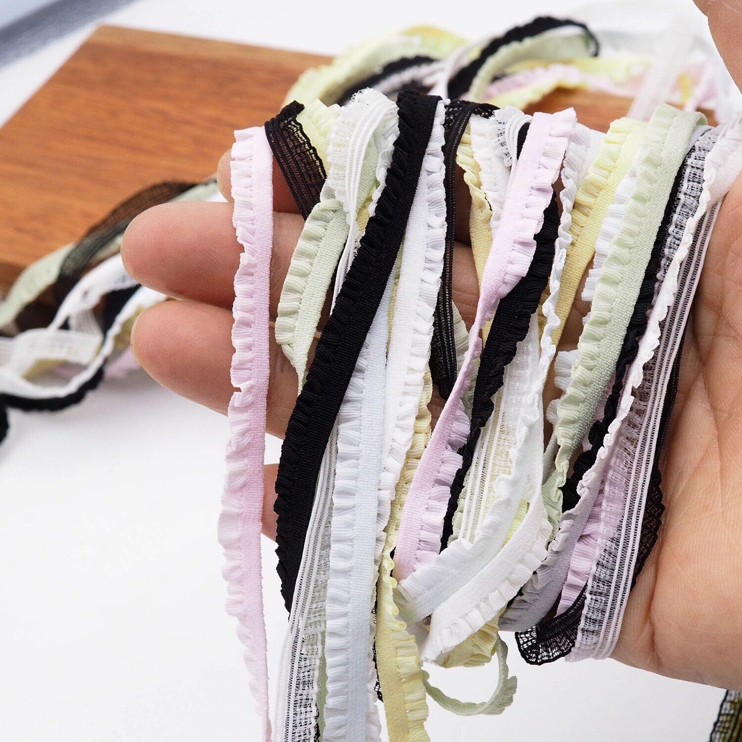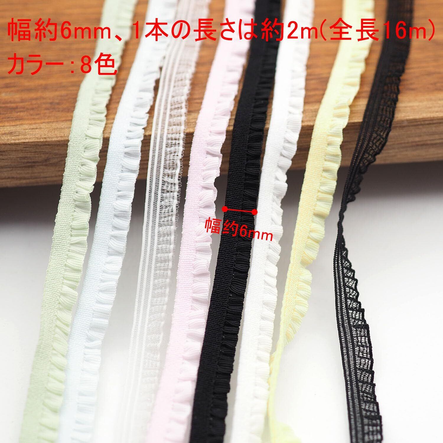 sempiterno 6mm 弾力性のレース 極狭のフリルレース DIY補助材料 誕生日 クリスマス ギフト 装飾材料 縫製素材 人形飾 8種類16m(6mm, 多色)