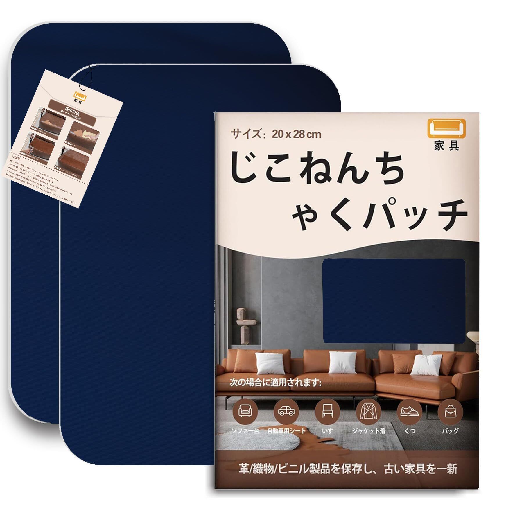 【新着商品】補修布シート 20×28cm 2枚入 布 穴補修り リネン 貼れる布 普通地~ 厚地用 はんぷ ハンプ 生地 リペアシート手芸用品 ナイロン用 補修シートリペアデコレーションキット(ネイビー)