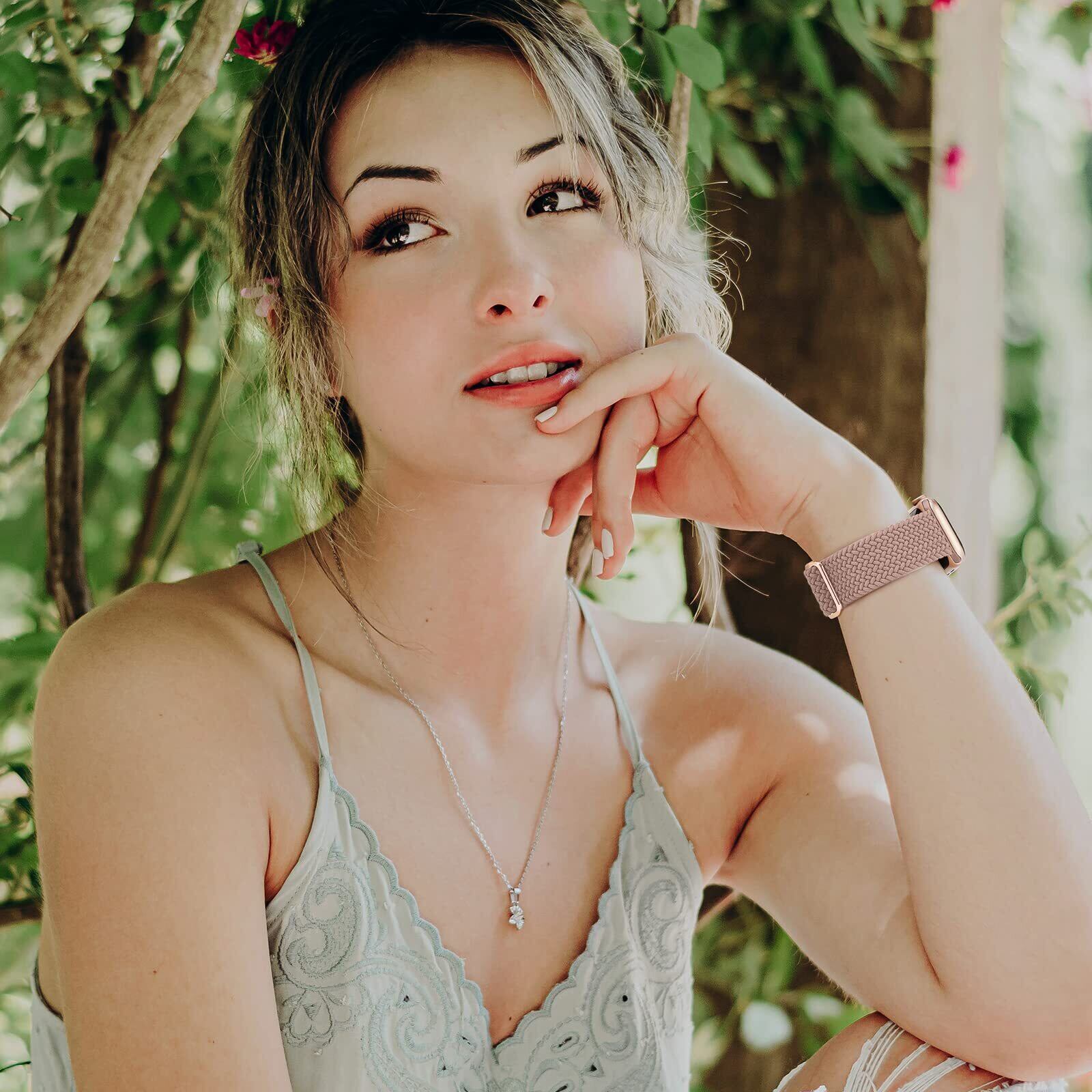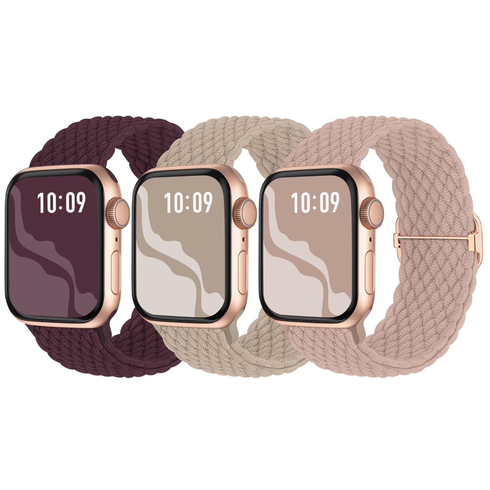 【3枚入り】Suitisbest コンパチブル アップルウォッチ バンド 42mm 41mm 40mm 38mm 編み込み Apple Watch ナイロンバンド 伸縮性 アップルウォッチ スポーツバンド Series 10 9 8 7 6 5 4 3 2 1 SEに対応 長さ無段階調整 柔軟 通気 防汗 サクランボ ミルクティー ダークピンク