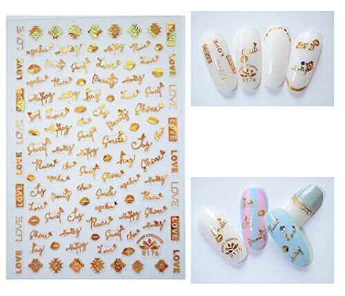 LANODO 8枚 ネイルシール アルファベット 3D 英字 英語 レーザ金 アルファベット 綺麗です ネイルステッカー DIY (2062)