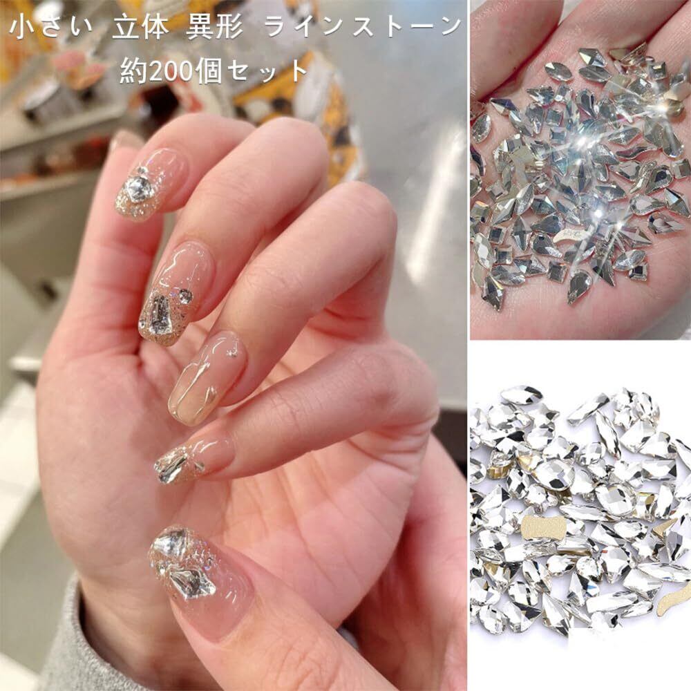 LIKENNY ラインストーン ネイルアート クリスタル ネイルパーツ 約200個セット 小さい 立体 異形 ミックスサイズ キラキラ ネイルストーン ネイル DIY デコパーツ