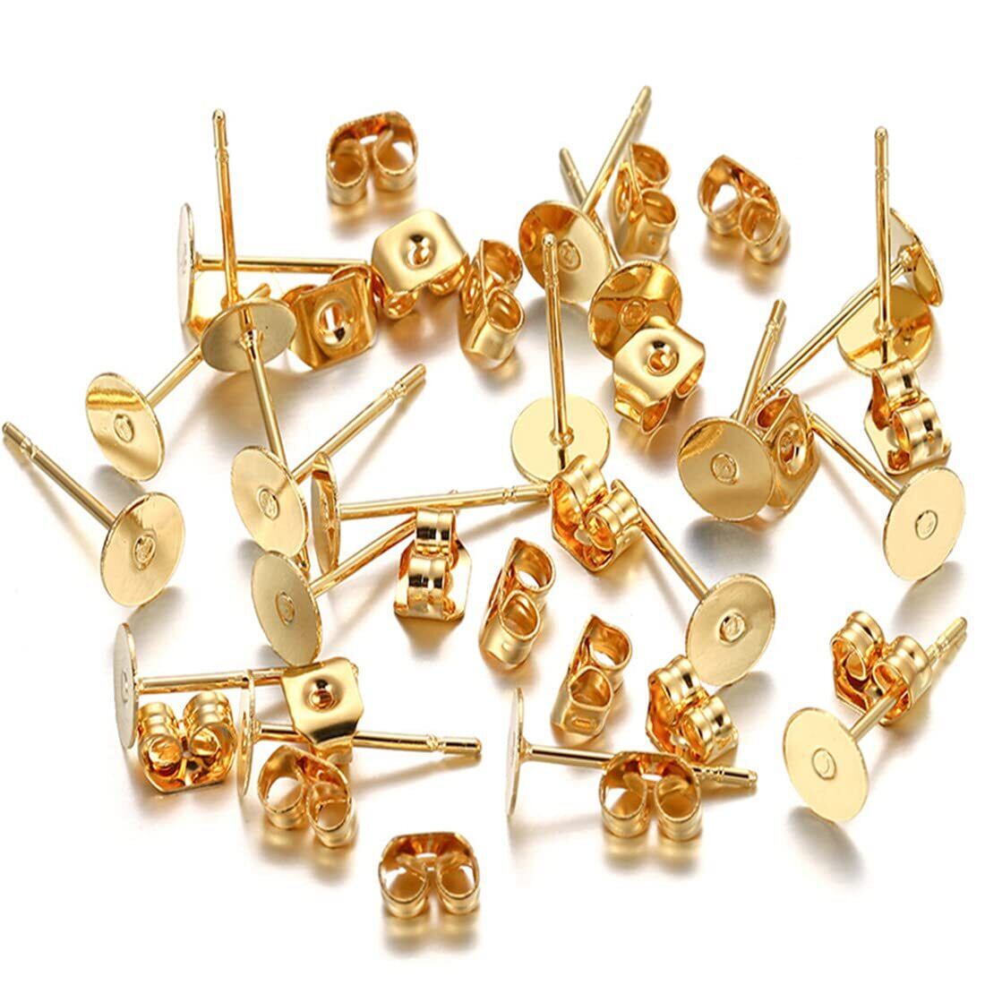 【人気商品】丸皿 ピアス パーツ サージカルステンレス 丸皿 平皿 3mm 4mm 5mm 6mm 8mm 10mm 12mm7サイズ 2色 樹脂 キャッチ付きピアス 台座付き バタフライキャッチ付き (ゴールド 3mm 20個入り)
