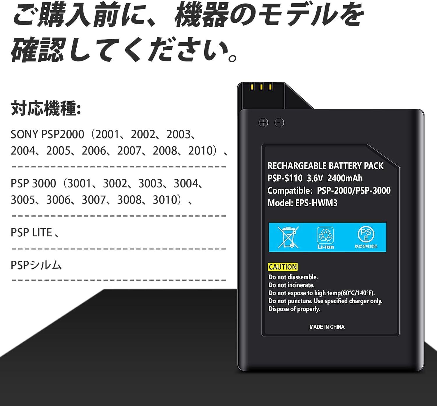 PSP2000/3000 用バッテリーパック PSP-S110 2400mAh 大容量 交換用 リチウムイオンバッテリー ElephantStory PSP2000 互換バッテリー PSE認証濟み