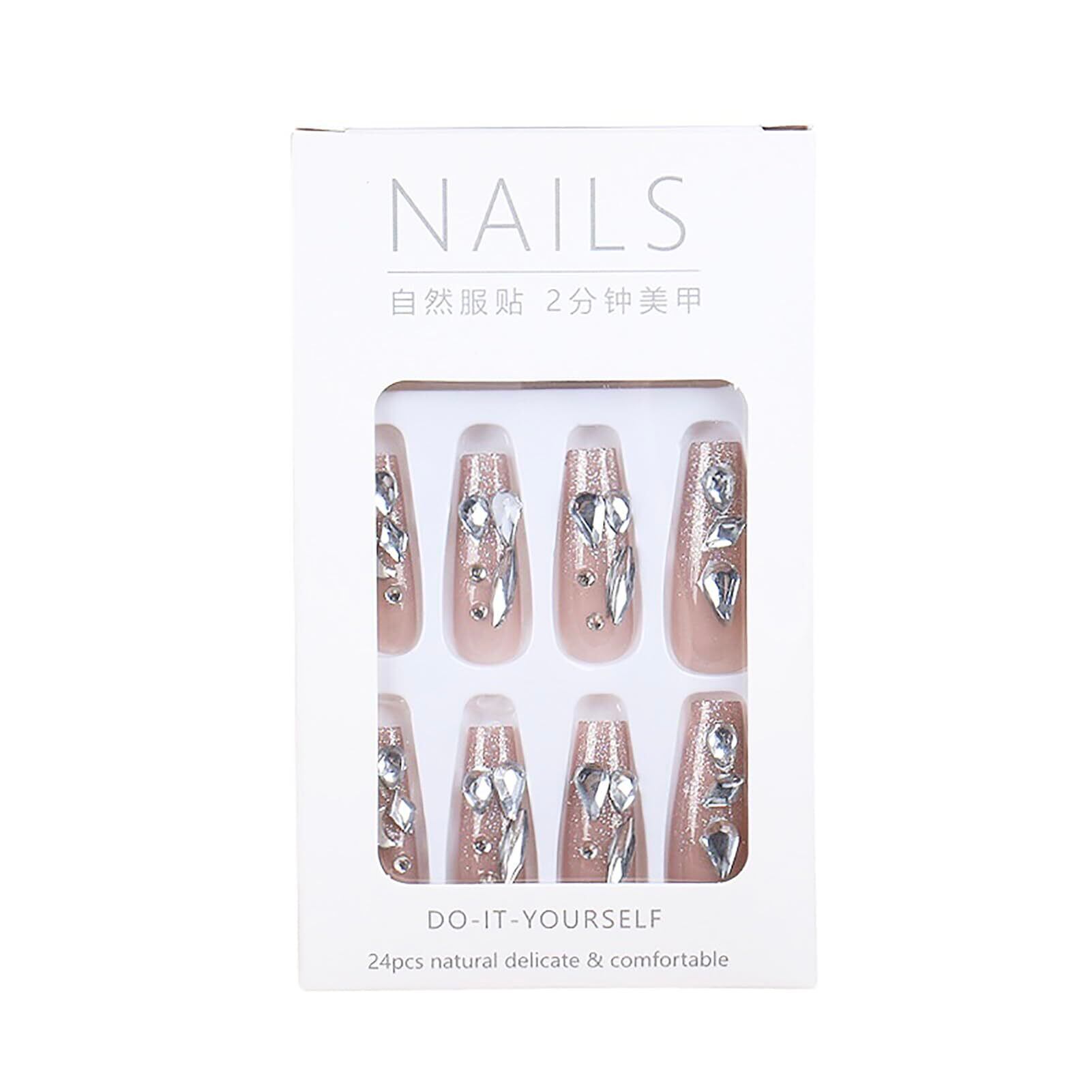 【パッケージ】予備のネイルチップを含む24枚+ネイル用両面テープ+木の棒+可愛い爪やすり1枚です。