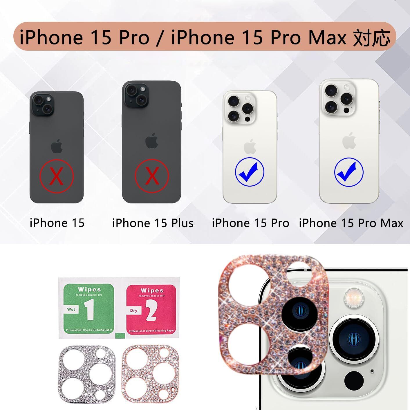 iPhone 15 Pro 用/iPhone 15 Pro Max 用 カメラ保護フィルム レンズカバー 【2枚セット】 シルバー+ローズゴールド カメラカバー カメラレンズ保護カバー iPhone 15 Pro 対応/iPhone 15 Pro Max 対応 カメラフィルム
