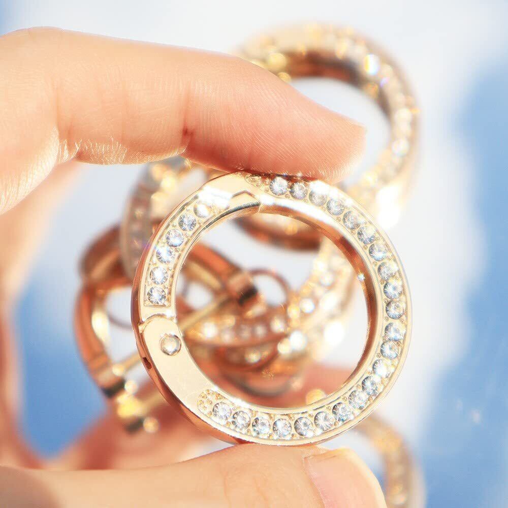 【数量限定】サムコス キーリング おしゃれ カラビナ ラインストーン キラキラ 丸型 カバン飾り 鍵飾り バッグチャーム DIY手作りアクセサリー ジュエリー作り デコキット 人気 レディース 金色+銀色 4個セット