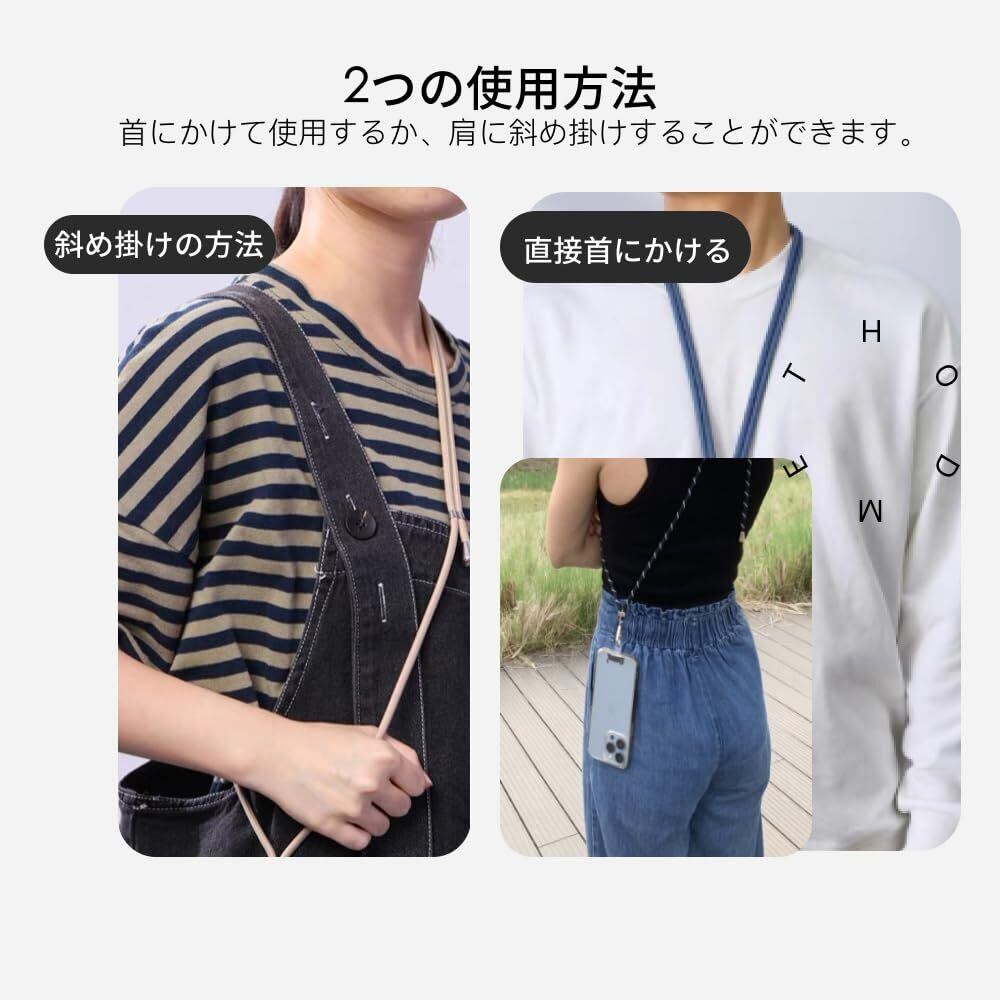 [Oumino] スマホ ショルダー ストラップ 携帯 ネックストラップ iPhone 15 ショルダーストラップ 対応 長さ142cm 耐荷重 5kg ストラップホルダー2枚 首掛け 斜めがけ アウトドア 落下防止 調節可能 全機種対応