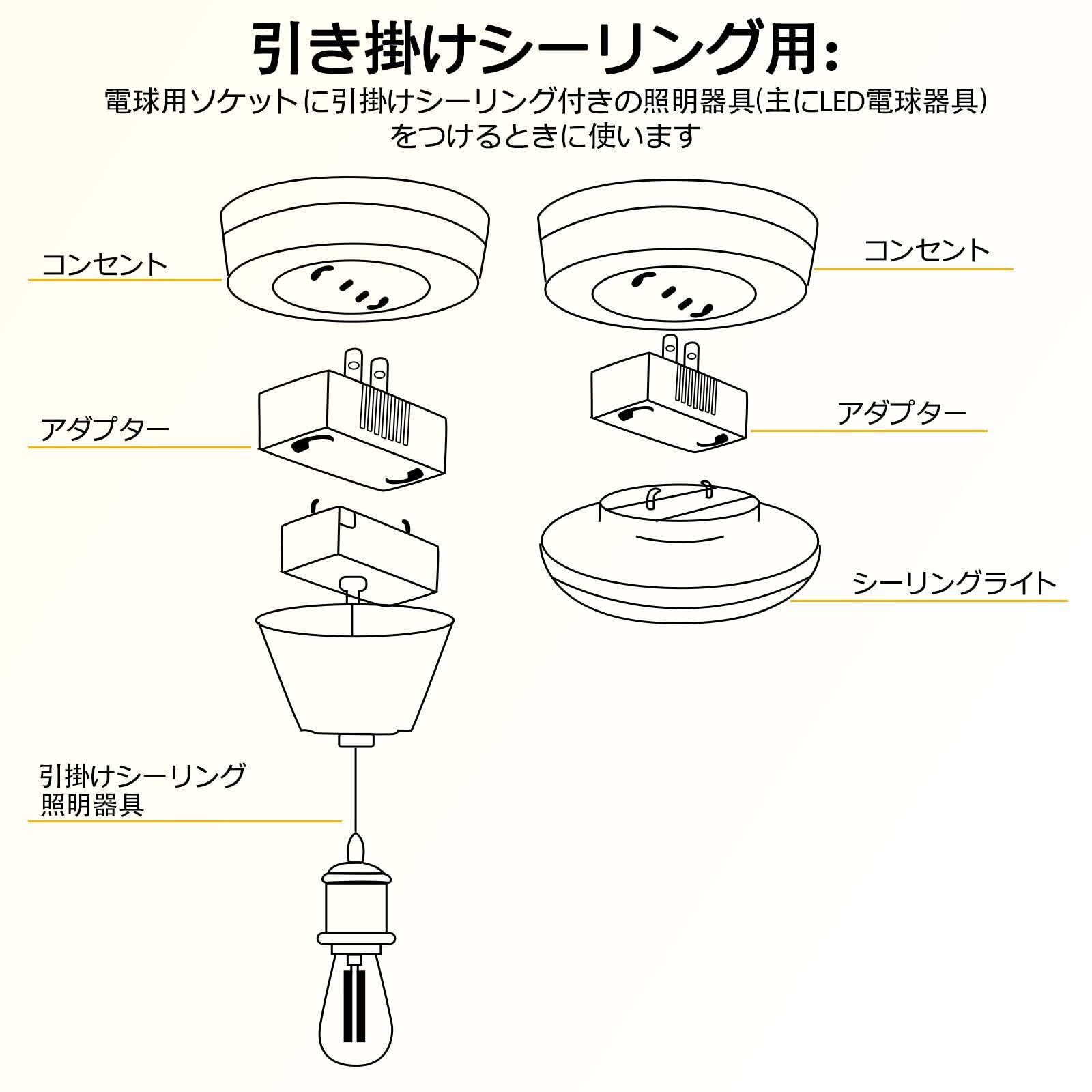 5.適応場合:セパラボディと合わせて使えば、電球用のソケットに引掛シーリング式の照明器具をつけられます。
