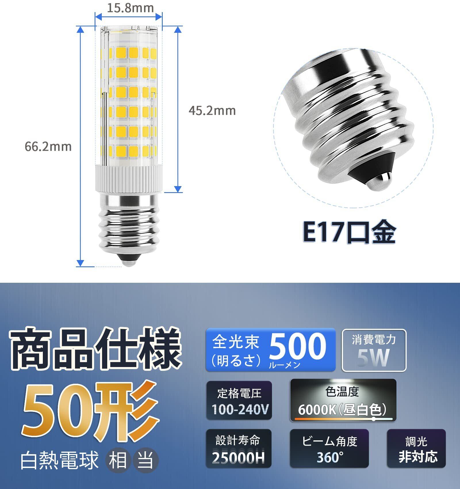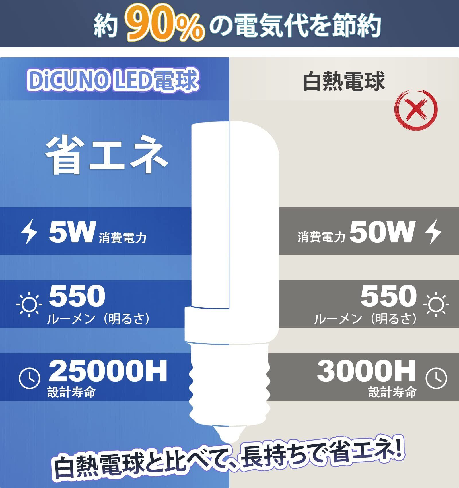 【2022最新】DiCUNO E17口金 LED電球 50W形相当 昼白色6000K 5W 550ルーメン 50W形 セラミック基盤 全配光タイプ 2個入 (e17-5W、昼白色)