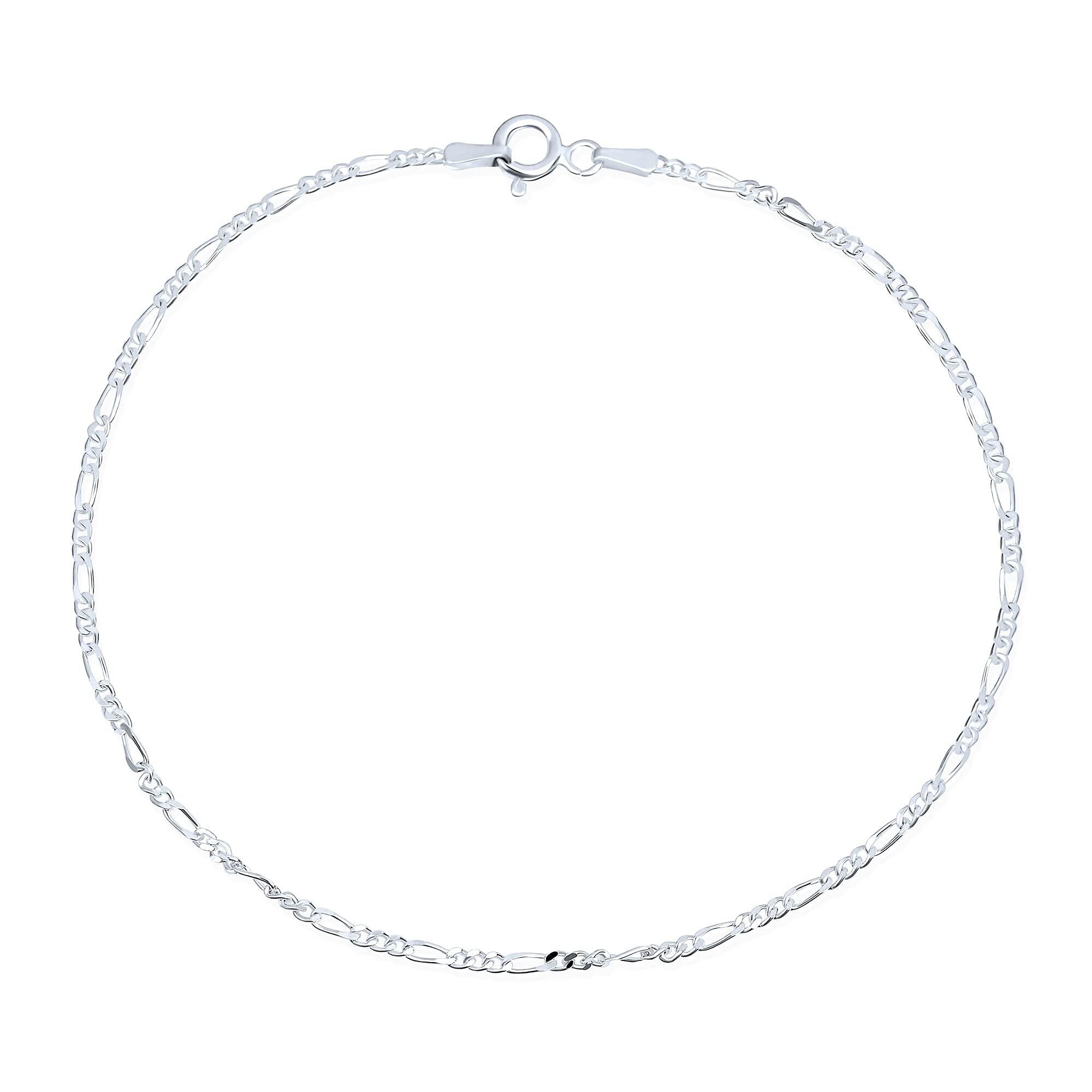 「シンプルでシンプルなフィガロリンクチェーンの足首チャームアンクルブレスレット。イタリア製の.925スターリングシルバーで作られた10インチです。」