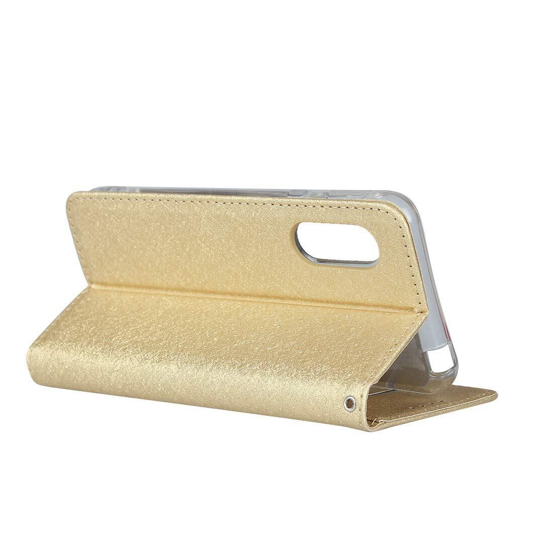 AQUOS sense3 au SHV45 docomo SH-02M sense 3 lite SH-RM12 センス3 lite ケース Android One S7 ケース 手帳型 ストラップ付き PU皮革 内蔵マグネット 携帯カバー カードポケット スタンド機能 ゴールド