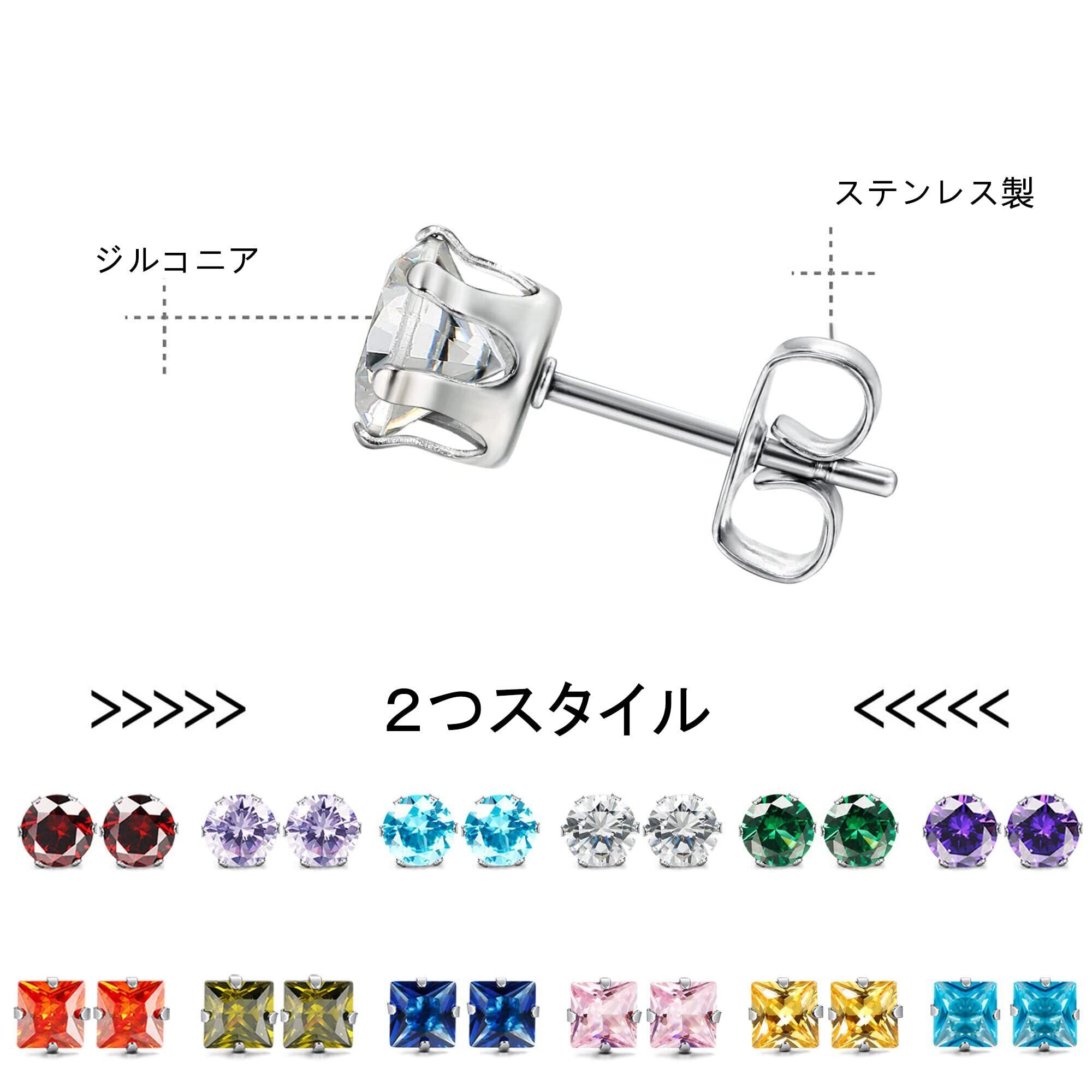 【人気商品】Jstyle[ジェイスタイル]【24ペアセット】レディース ピアス 人気 スタッドピアス 一粒 ピアス ジルコン 誕生石 ステンレス アレルギー対応 48個 ホワイト スクエア 誕生日 プレゼント クリスマス キラキラ ピアス