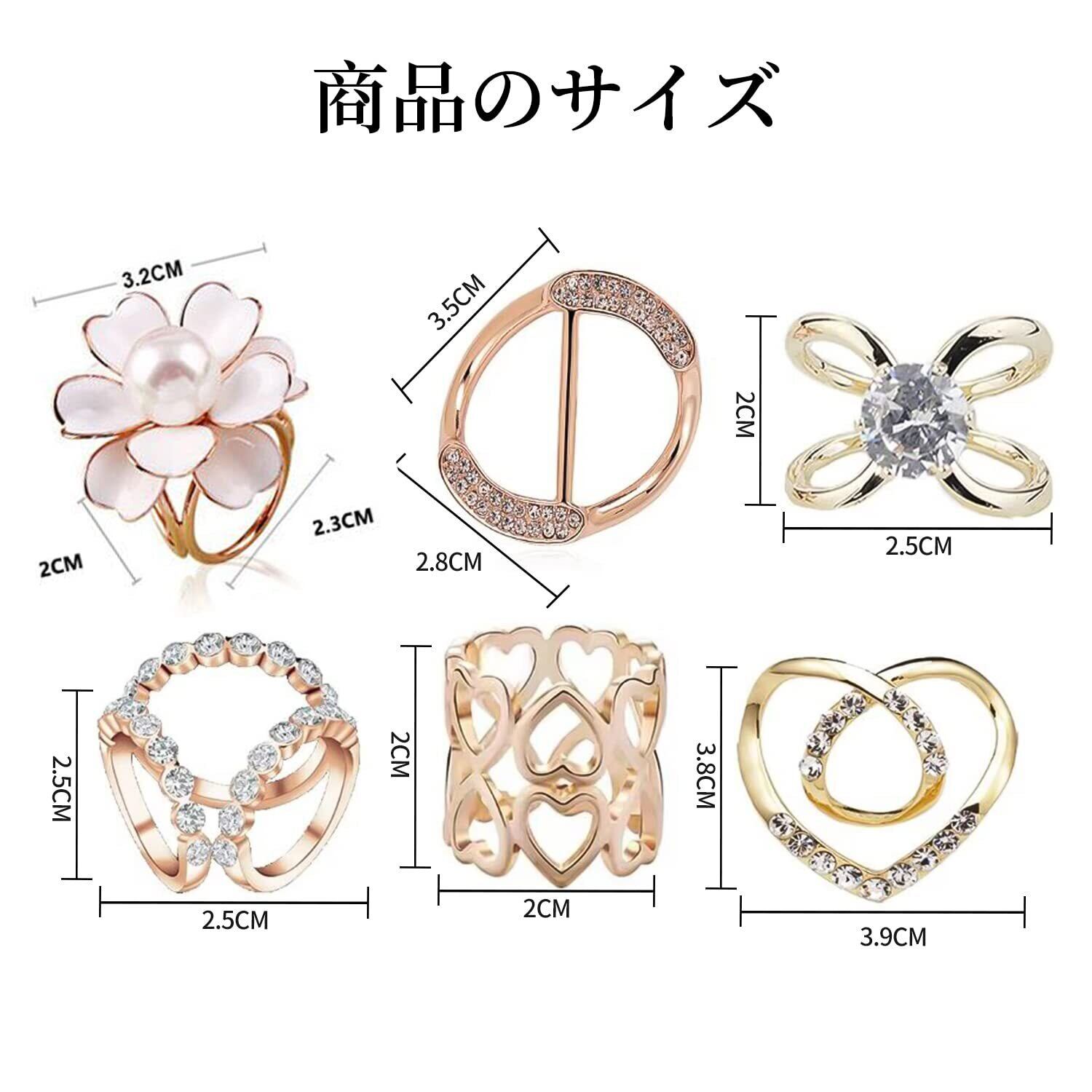 【特価セール】Coollooda スカーフリング スカーフ留め 6種6個入 ラインストーン 女性 人気 スカーフ リング 滑らか 上品 シルク クリップ 結婚式 母の日 入学式 卒業式 誕生日 母へのプレゼント 金色 ゴールド