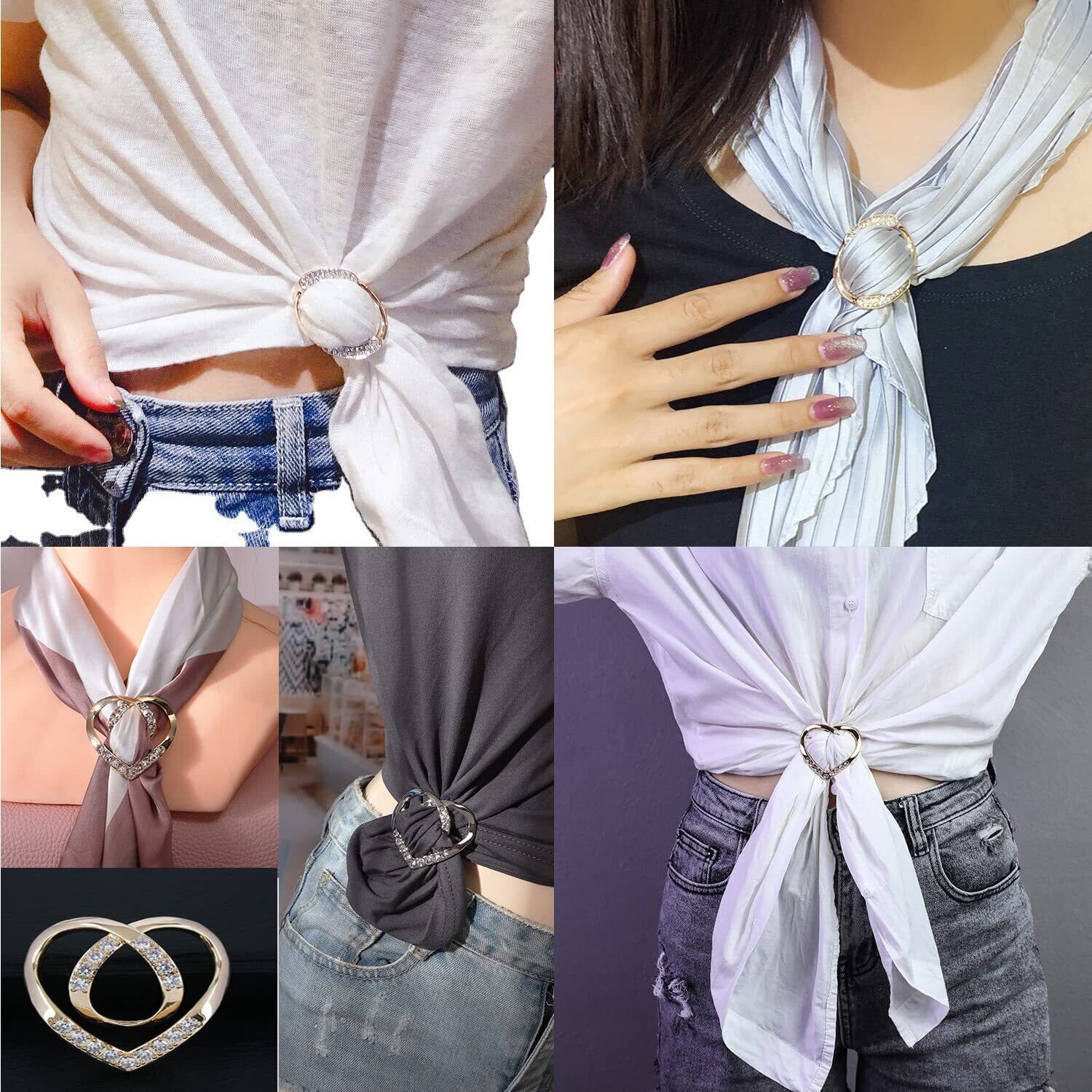 【プレミアムスカーフリング】:このスカーフリングには6つのスタイルがあり、すべてのスカーフに合わせてさまざまなスタイルがデザインされています。楕円形とハート型のスカーフリングは、スカーフのマッチングに加えて、Tシャツやシャツのマッチングにも使用できます。 Tシャツは多様性を追加します。