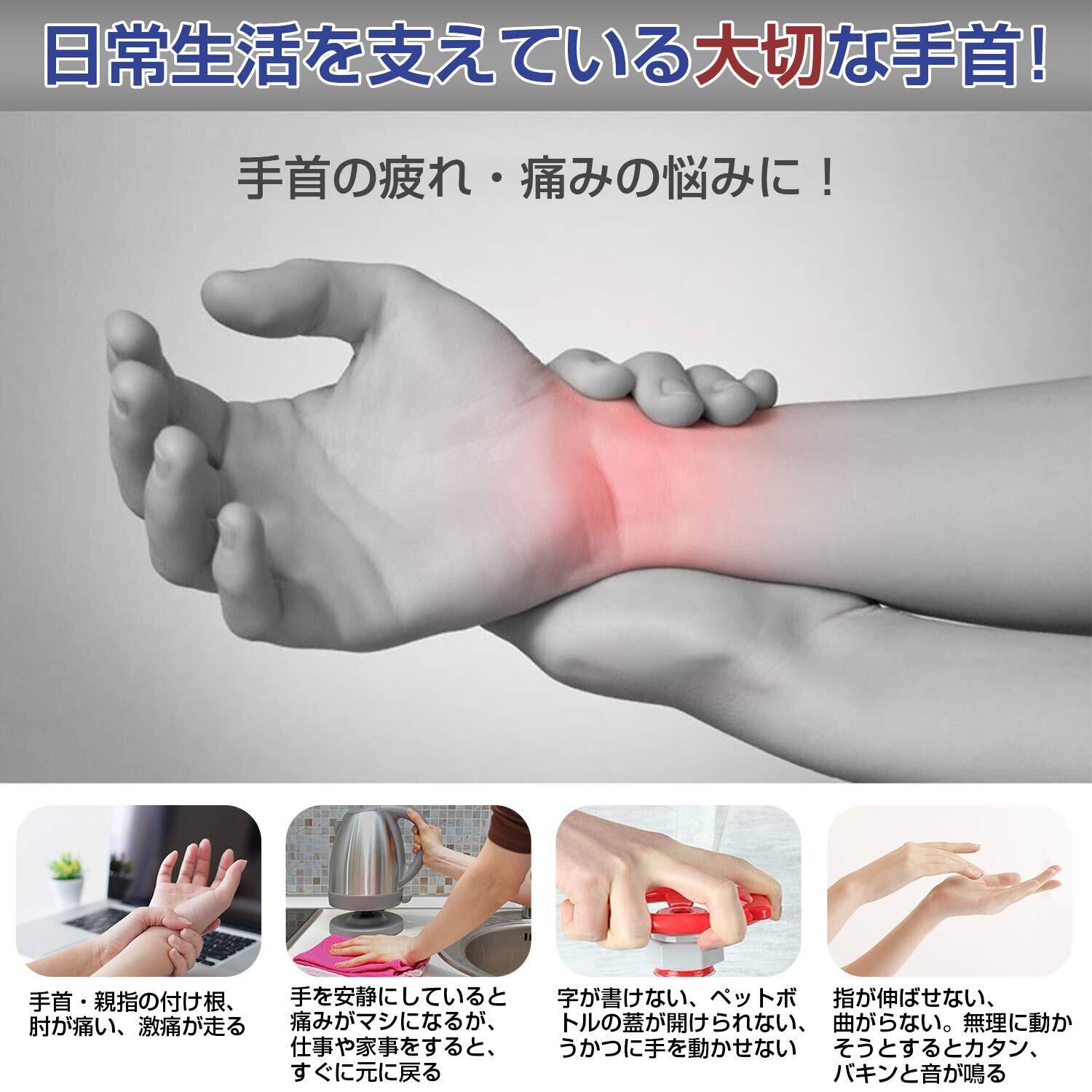 腱鞘炎炎、ねんざなどの手首の固定に。家事、育児、スポーツ、ウエイトトレーニング等での手首のトラブル防止に!