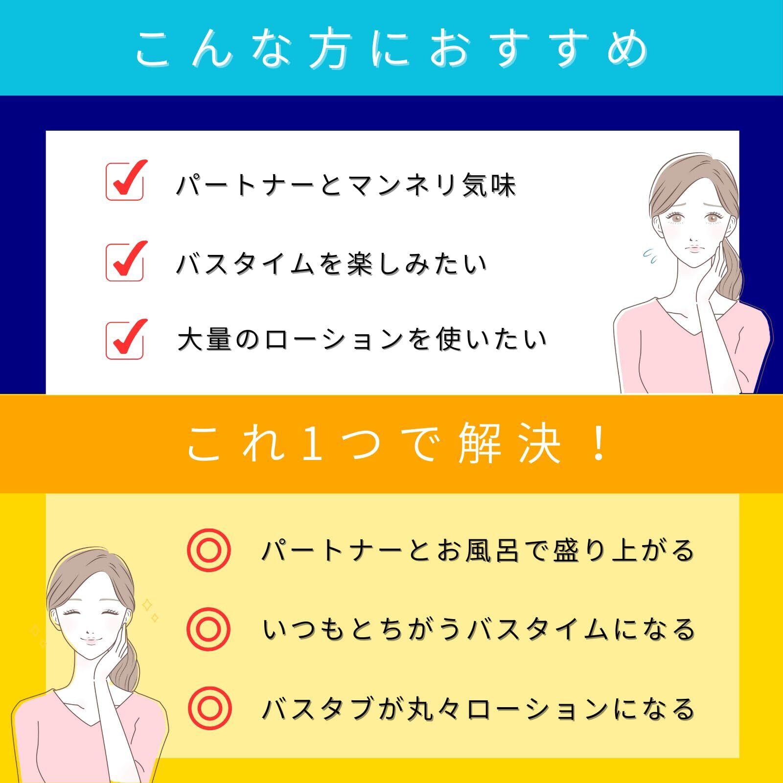 いつものお風呂がとろとろになる浴用ローション。リピート率の高い人気の商品です。カップルやご夫婦、もちろんお一人様も、ローション風呂をお楽しみください。