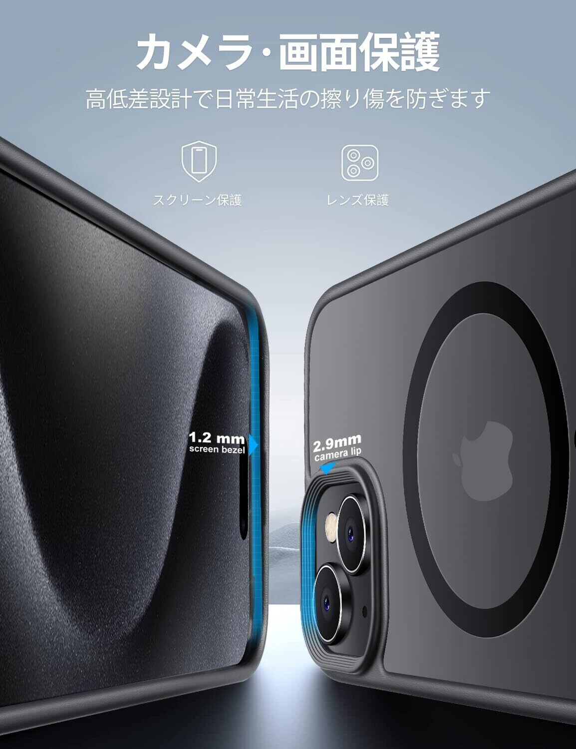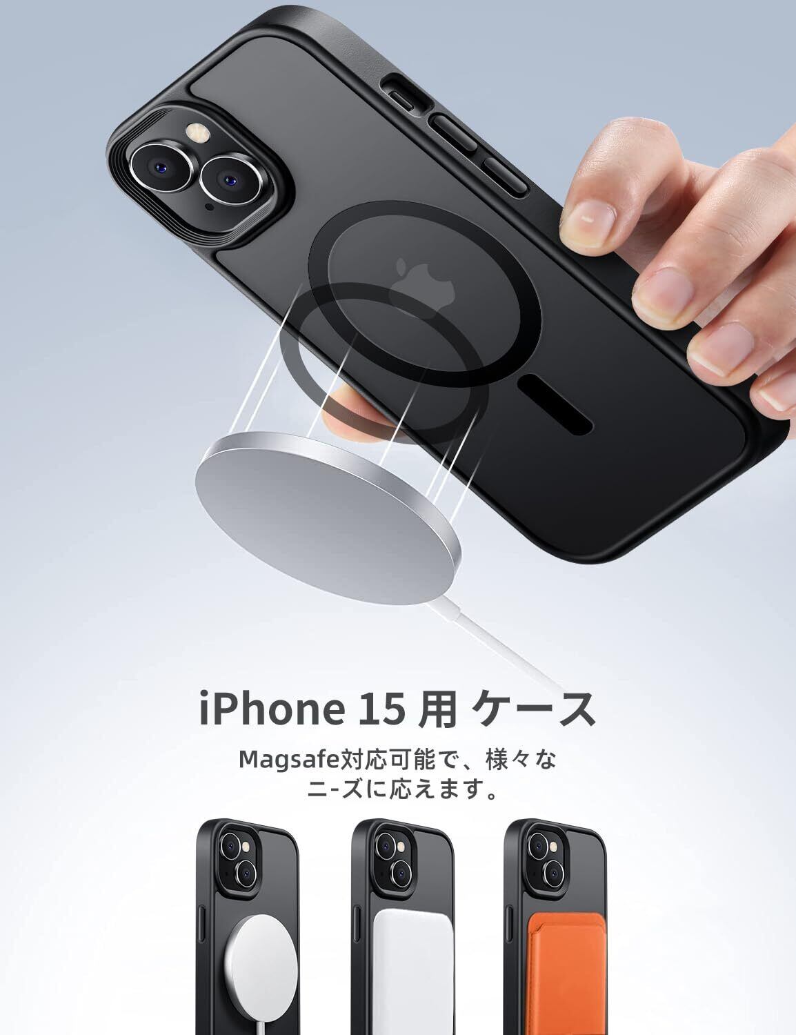 iPhone 15 用 ケース MagSafe対応 ワイヤレス充電 磁気ケース 耐衝撃性 米軍MIL規格の保護 傷に強い背面 6.1インチ
