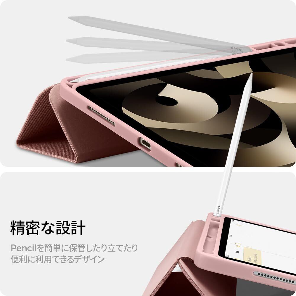 Spigen iPad Air5 ケース 2022 (第5世代) iPad Air4 ケース 2020 カバー スタンド Apple Pencil収納 耐衝撃 すり傷防止 軽量 カメラ保護 レザー オートスリープ シュピゲン アーバン・フィット ACS01944 (ローズ・ゴールド)