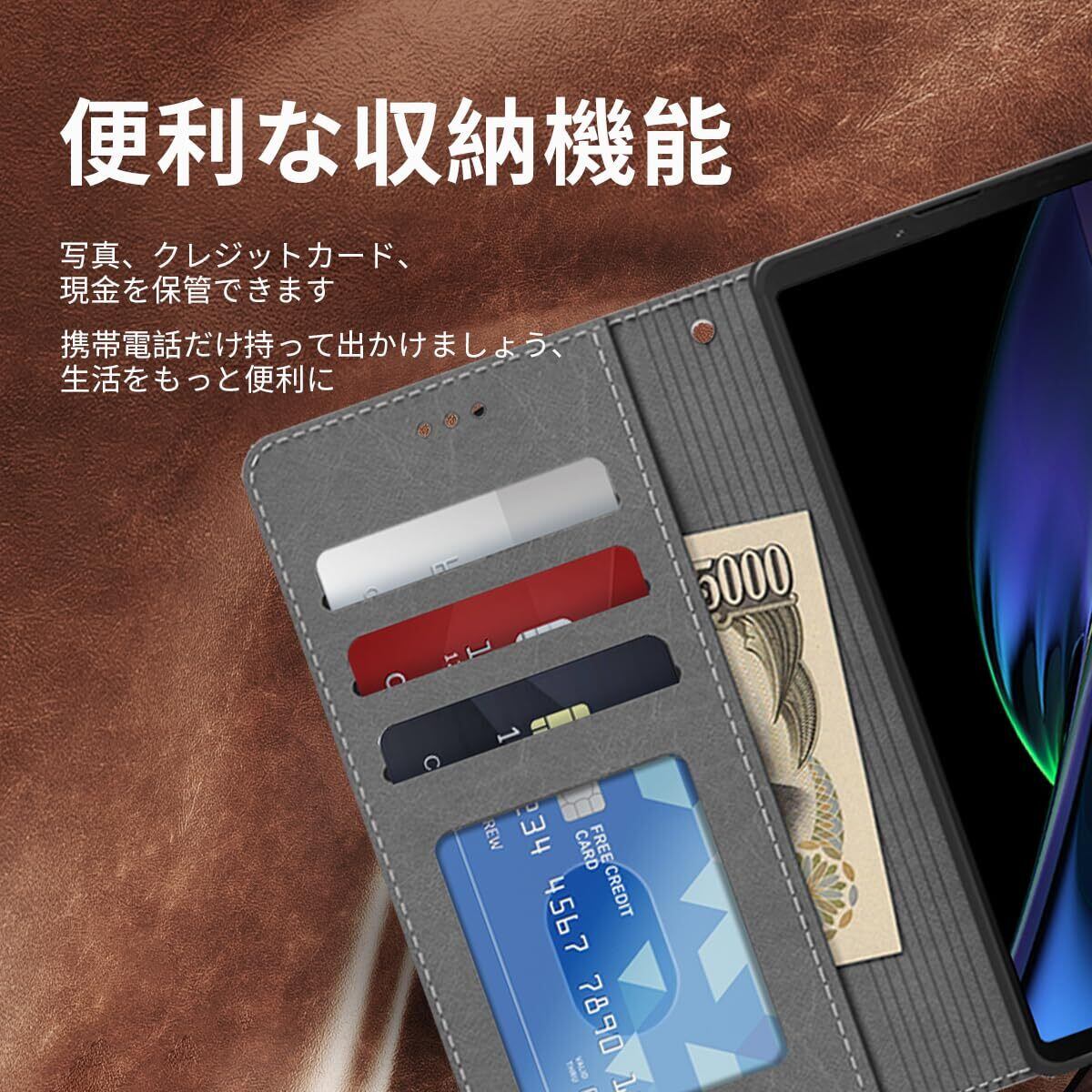 【便利な収納機能·スタンド機能】横置きスタンド機能た付いて、映画鑑賞、仕事、勉強に便利です、これにより両手が解放され。ケースの裏側にカードポケット3つ, お札入れポケット一つ、写真、クレジットカード、Suica、クレジットカード、少額の現金を収納可能。マグネット開閉デザイン、開け閉めしやすく、使いやすいです、貴重品を守る。携帯電話だけ持って気軽に出かけられます。生活や旅行がより便利になります。