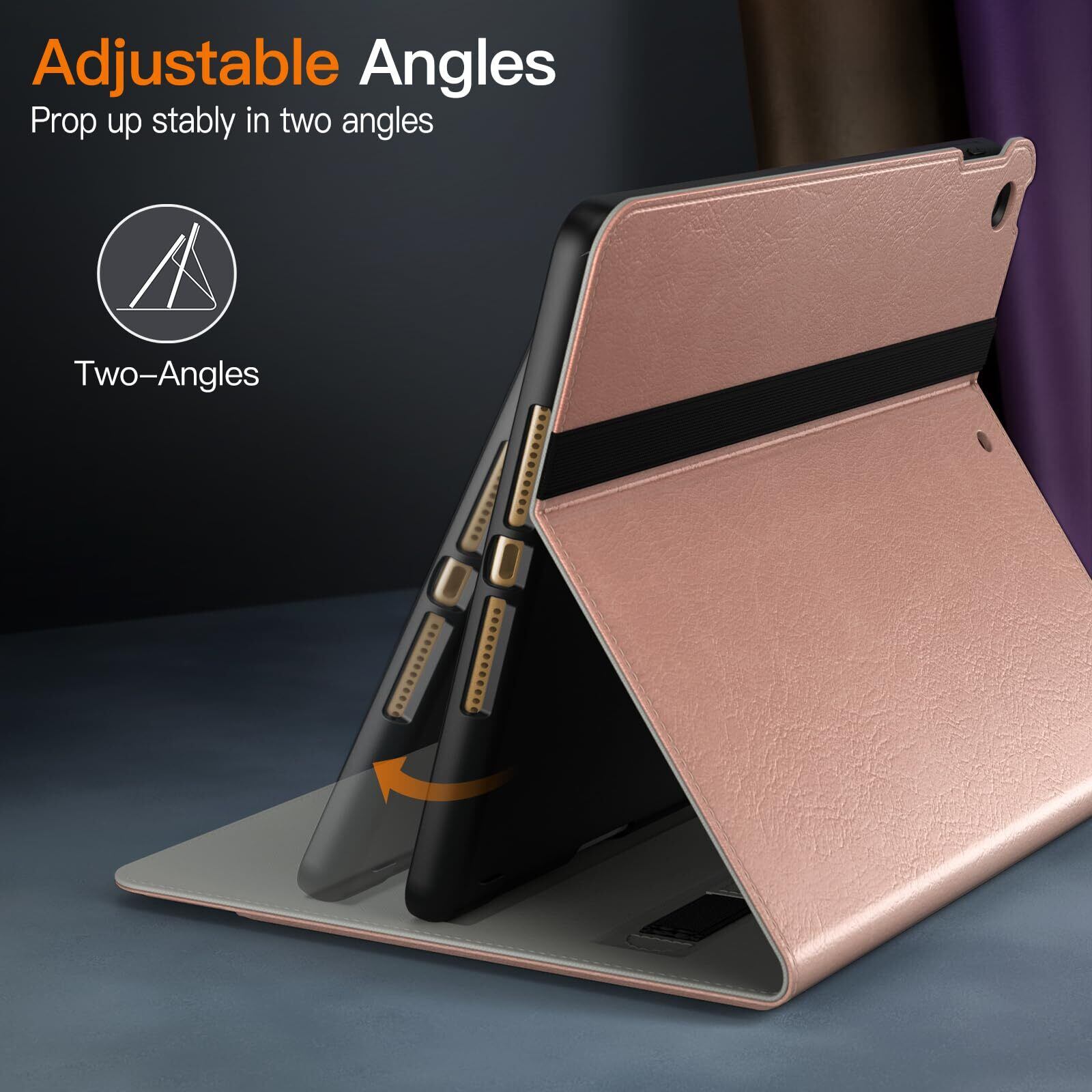 JEDirect iPad 6/5 ケース (9.7インチ、2018/2017モデル、第6/5世代用) PUレザー ビジネスフォリオ タブレット保護カバー Pencilホルダーとポケット付き マルチアングルの視聴 (ローズゴールド)