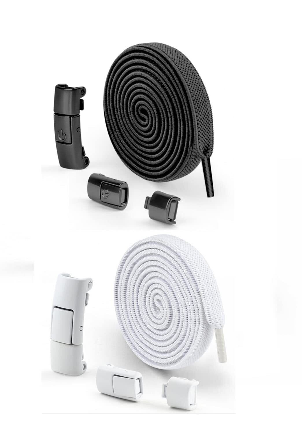 【内容物】◆靴ひも金具(黒色):2個 、(白色):2個 ◆靴ひも(黒色):2本、(白色):2本 (2足セット)