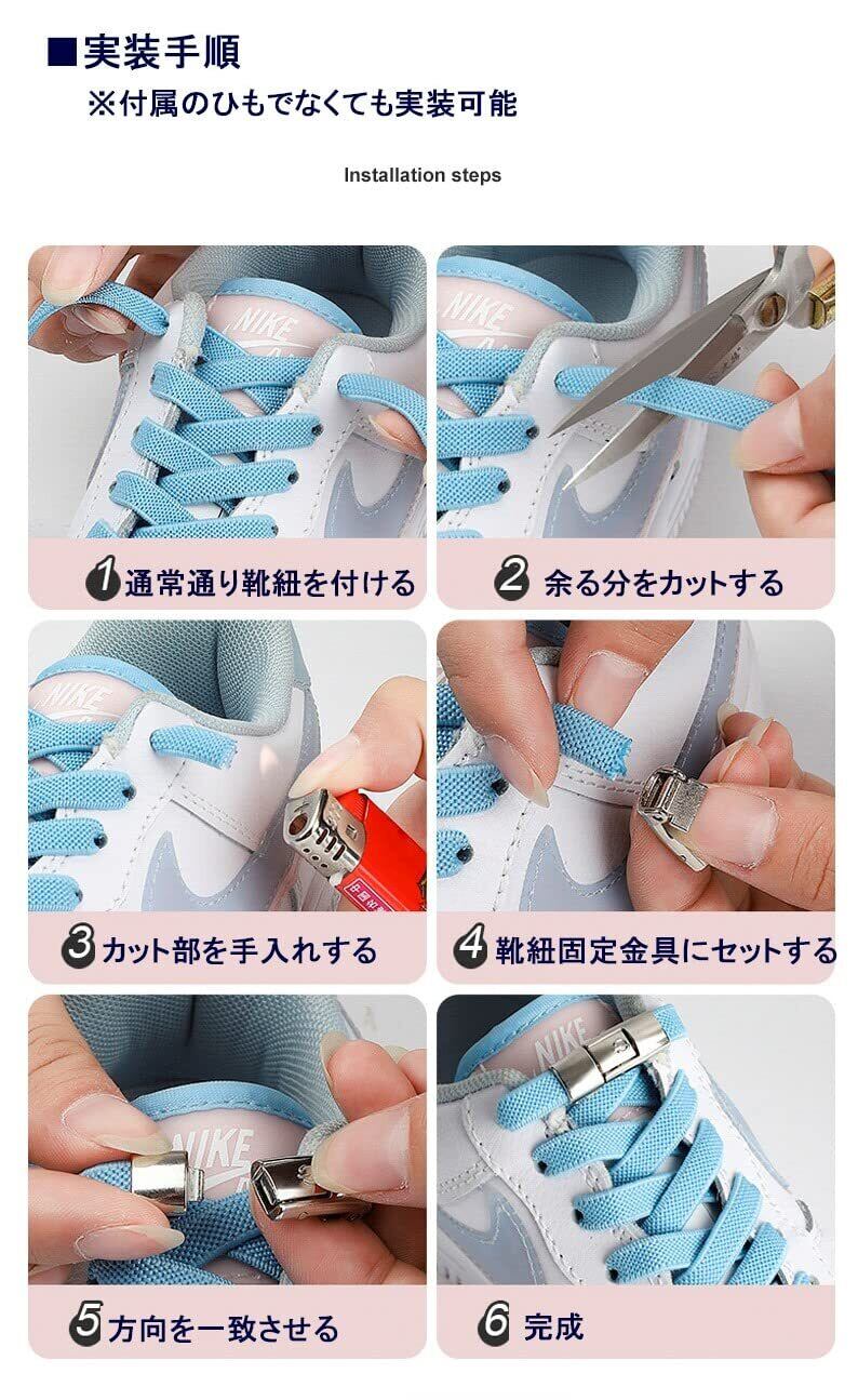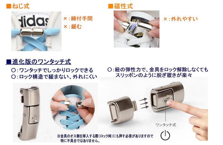 【アマゾン限定】 ワンタッチ式仕様 結ばない靴ひも ワンタッチ靴紐 くつひも 結ばない 結び目隠し 金属製紐止め金具 靴ひも 子供も大人も使用できる
