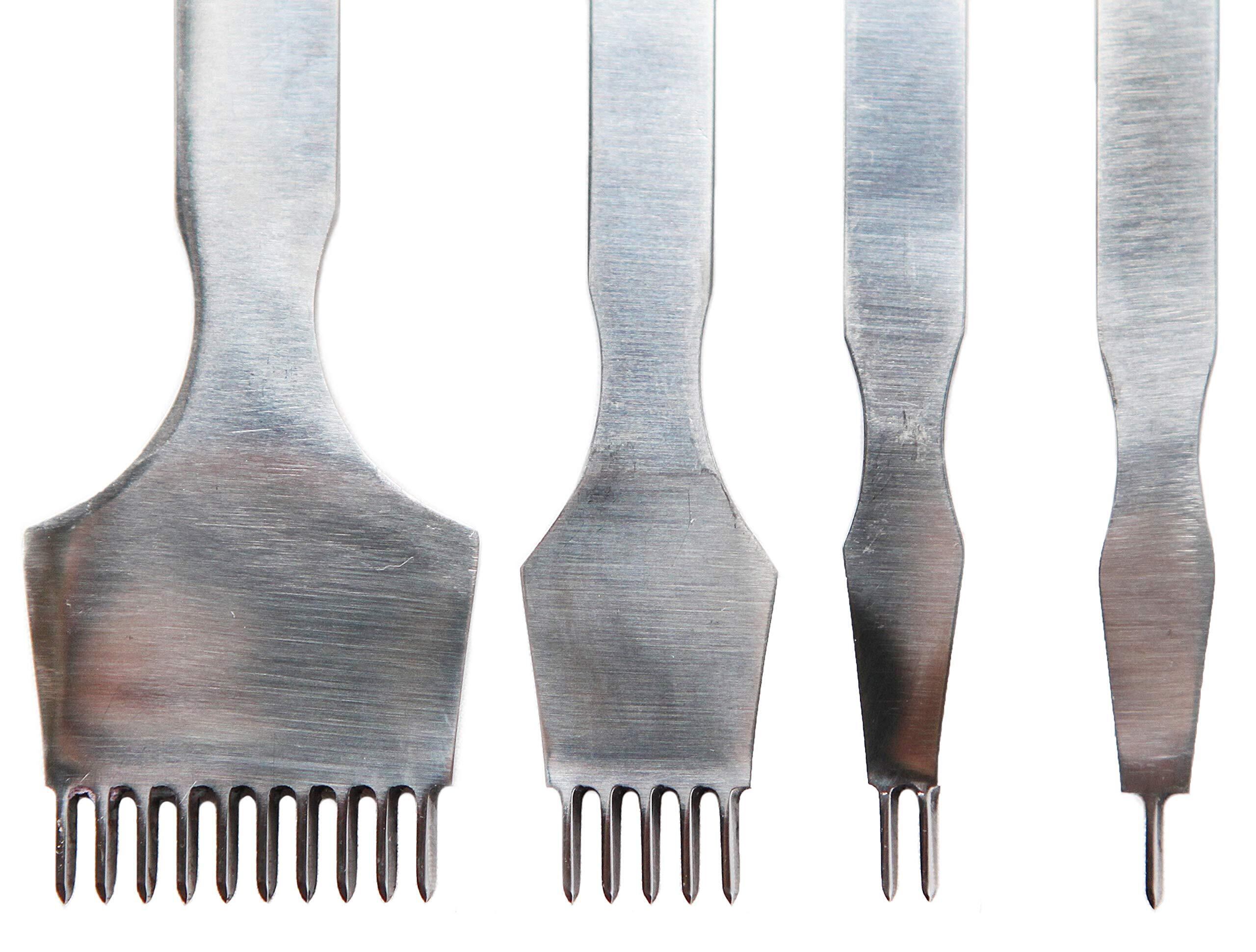 ピッチサイズは小さい程、革が薄くて小物の制作。大きい程、革が厚くて大きなバッグの制作などで選ぶのが一般的ですがここは好みの問題でもあります。 又、目数は多いほど直線での作業効率優先、1,2本は曲線などの細かい部分で使分けると良いでしょう。使用後は手の汗などをふき取りミシン油、CRC等のやわらかい油をぬって保管して下さい。錆を防ぎ長持ちします。